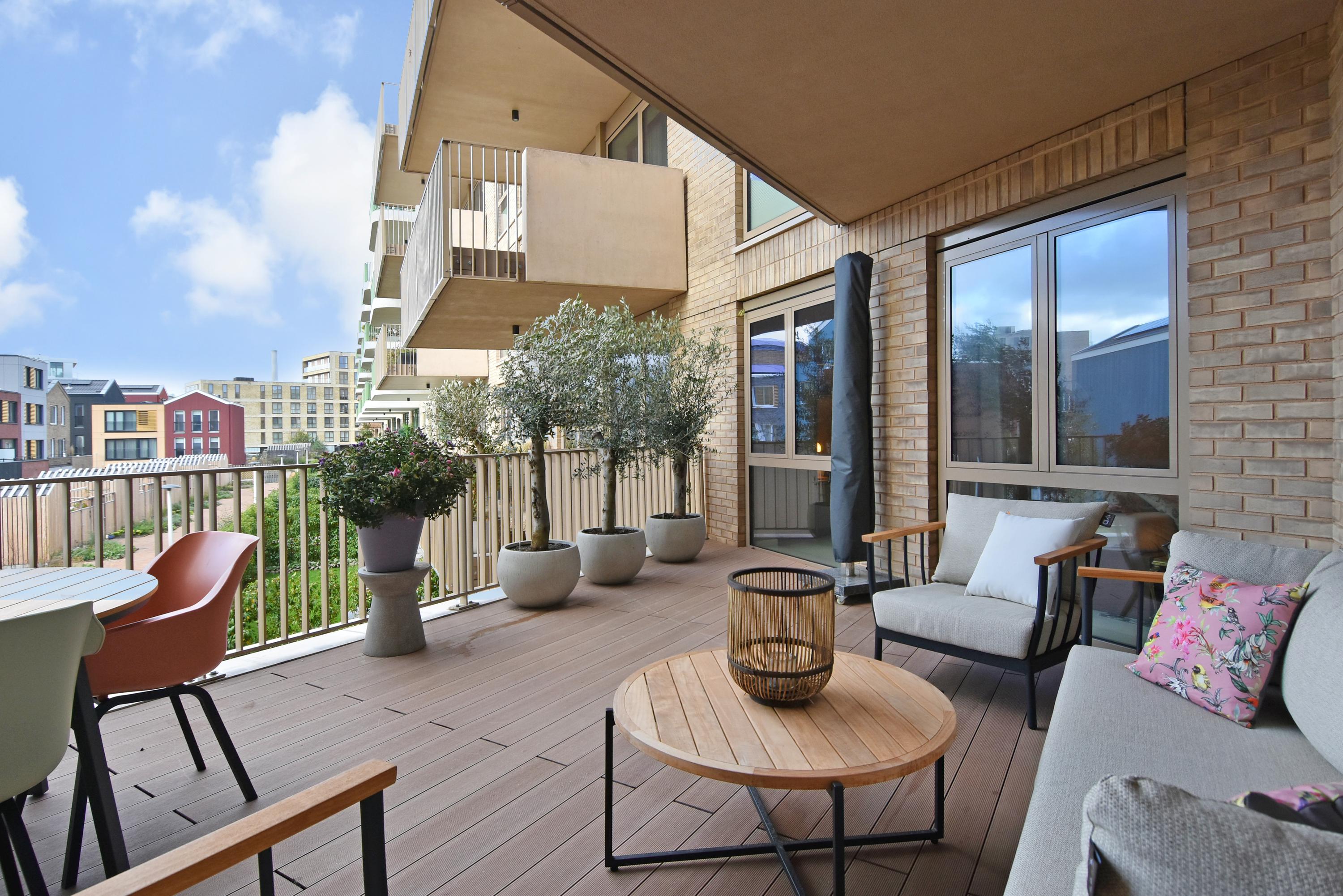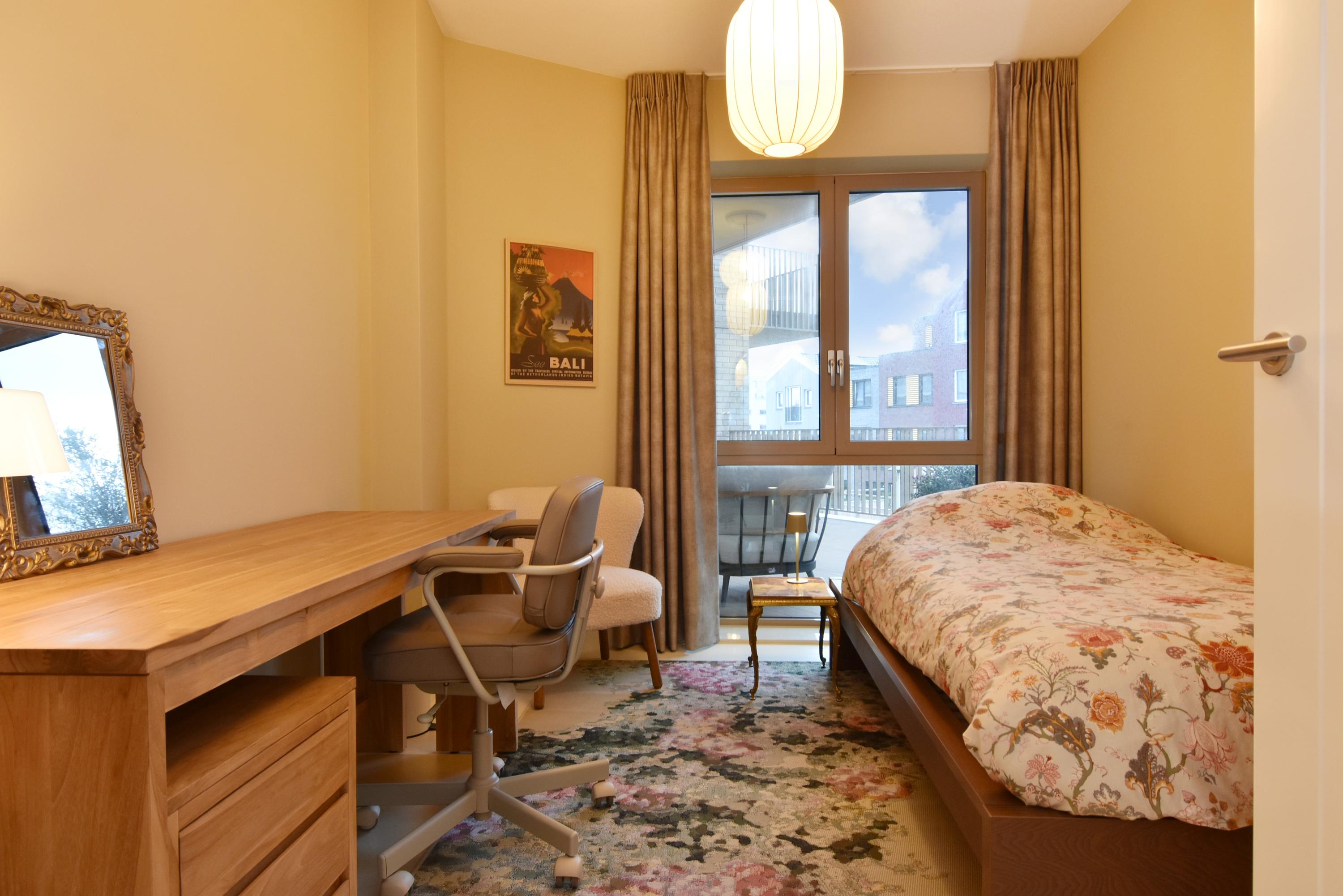 Apartment Den Haag with sea views offers a rare fusion of modern architecture and understated luxury. Situated in Scheveningen, this high-end apartment spans 135 m² and features expansive floor-to-ceiling windows that frame the panorama of the harbour and the North Sea. The living area flows seamlessly into a designer kitchen with a cooking island and integrated luxury appliances. Sliding doors invite the outdoors in, connecting the main living space to a private 29 m² balcony overlooking a landscaped courtyard, perfect for quiet afternoons or evening gatherings.