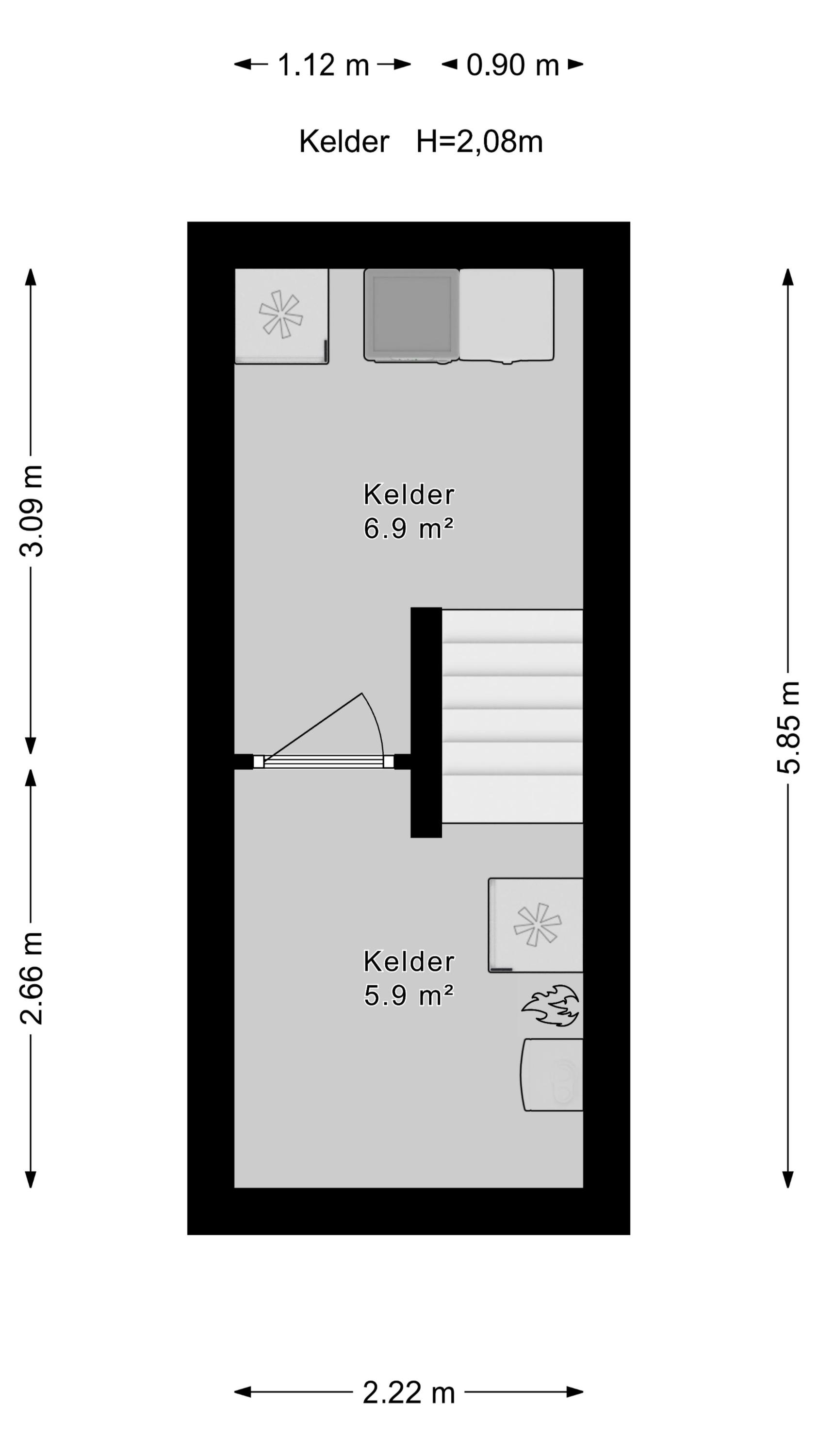 The laundry connections and another electric boiler, as well as a wine cellar fitted with wooden racks, are at basement level.