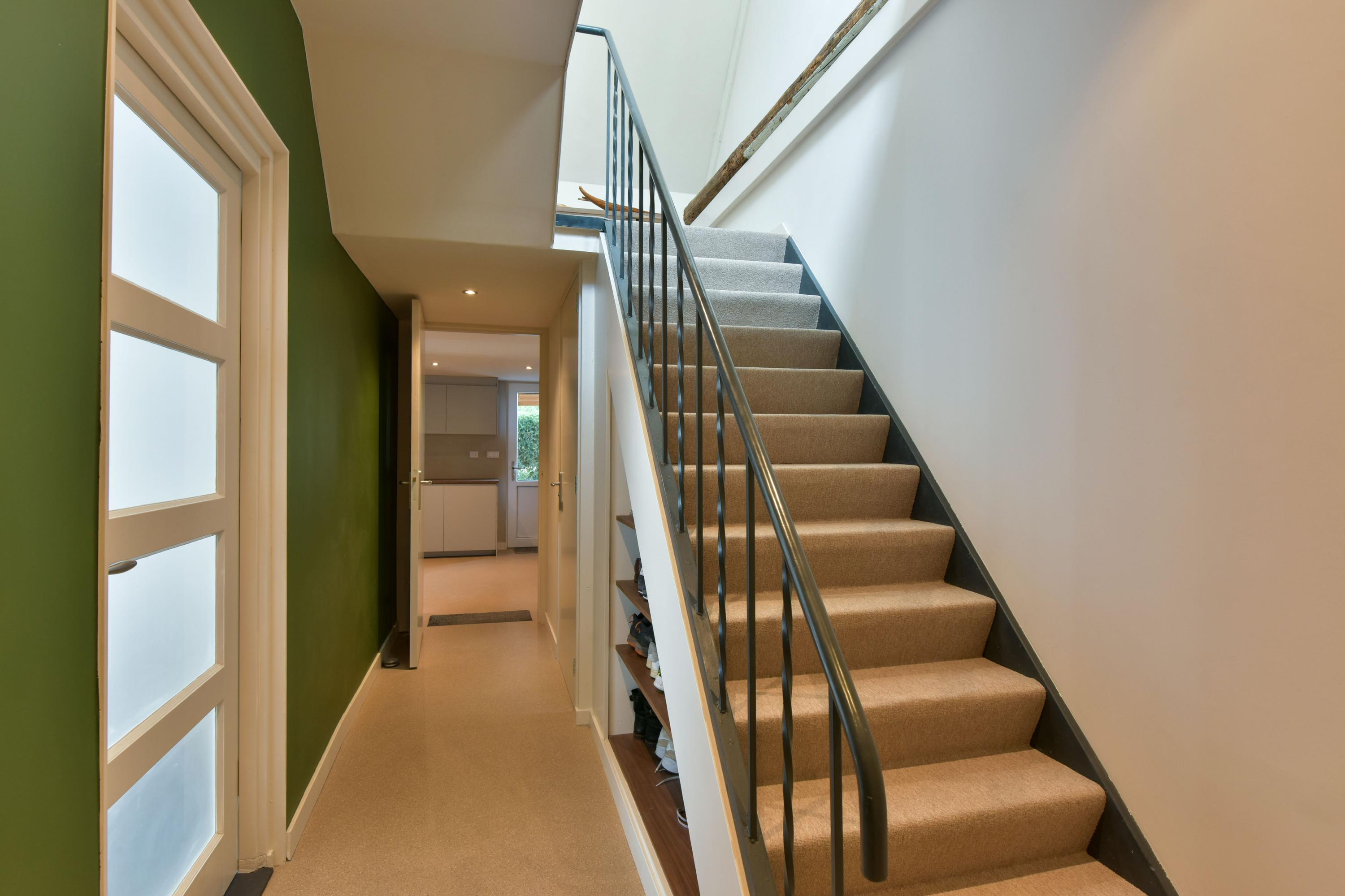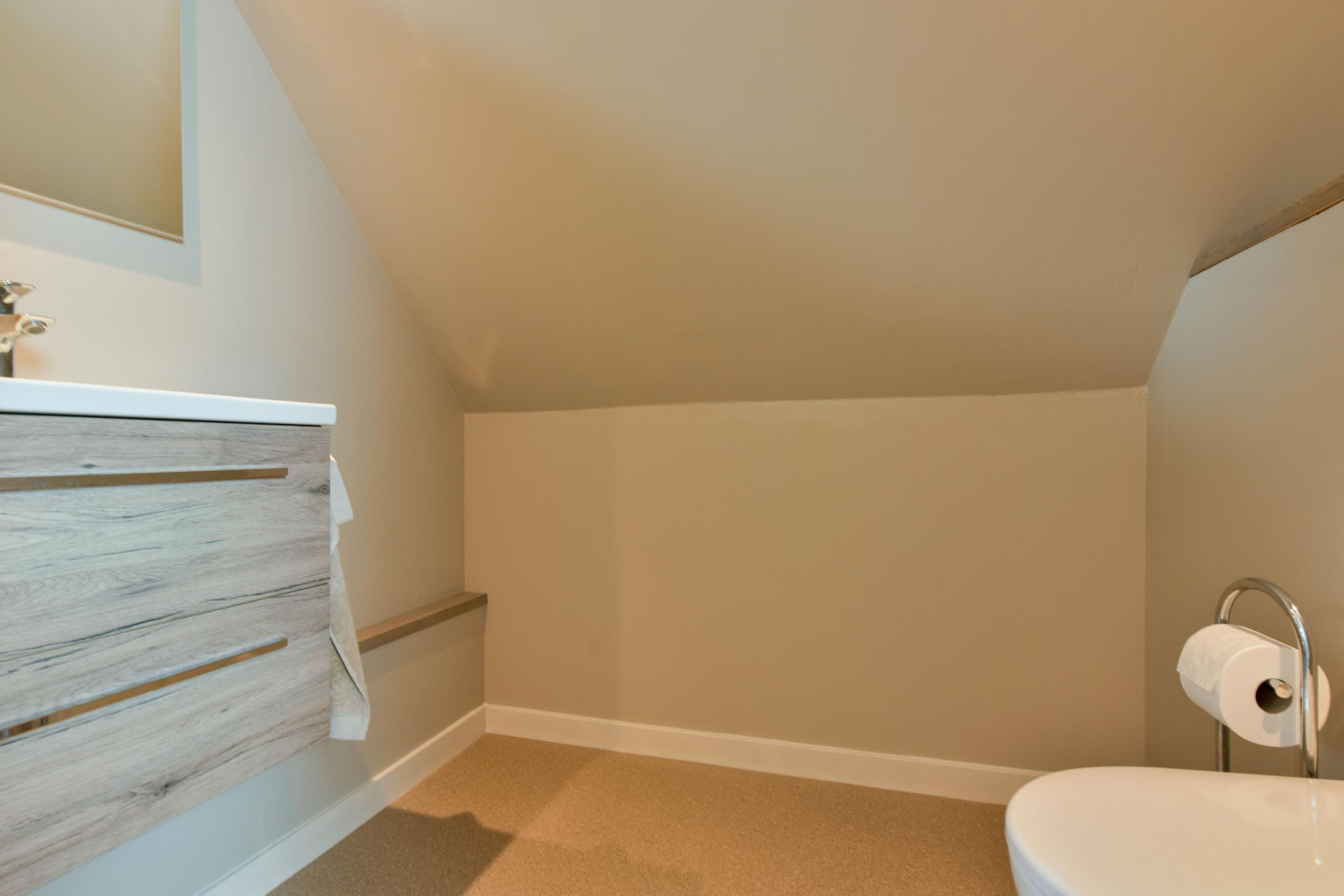 A comfortable staircase leads from the second hallway to the first floor. The landing immediately gives a spacious impression. Off the landing is a separate toilet — a great comfort on this level.