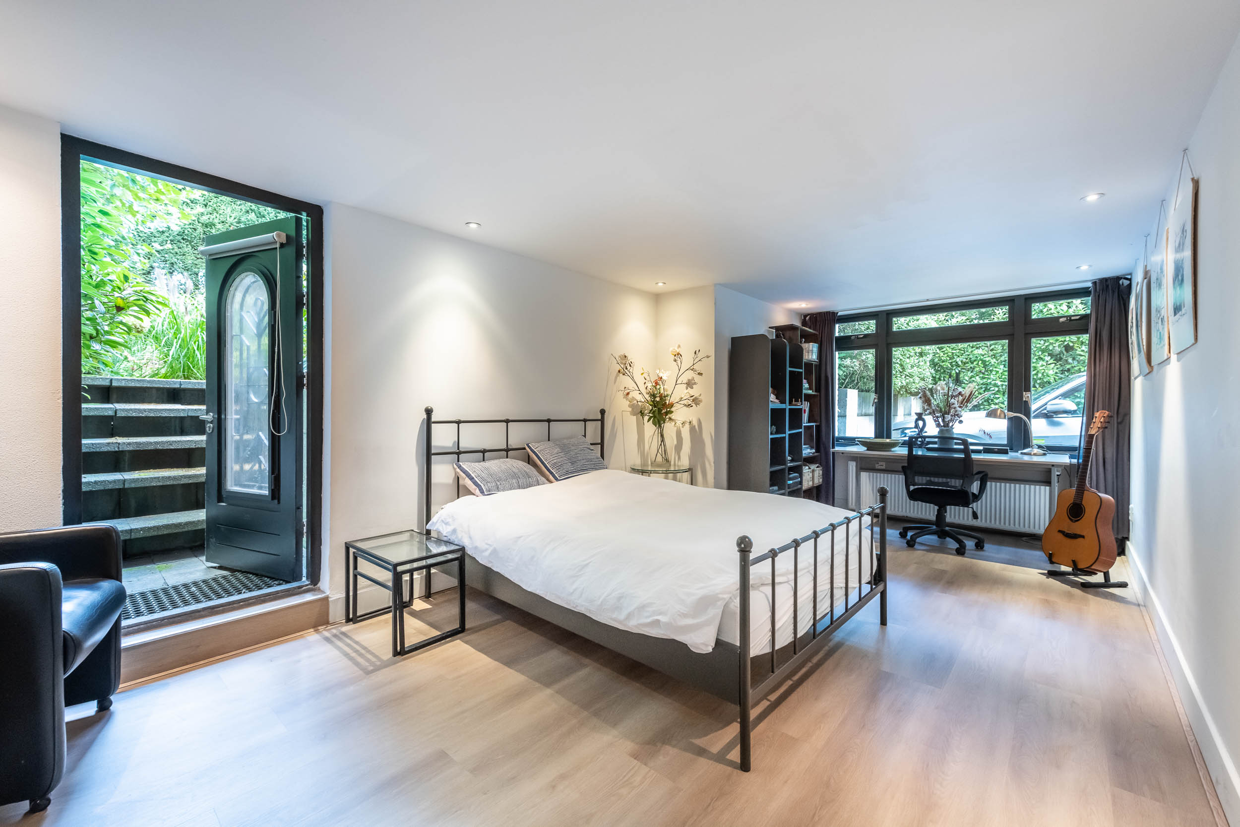 The ground floor is particularly comfortable for families thanks to the multiple living areas and the spacious kitchen (from 2022). The numerous windows and glass doors make the rooms light and sunny. Both the living room and kitchen have French doors leading to the garden/terraces. The basement features an indoor garage, laundry room, gym, two spacious (bed)rooms and a bathroom.