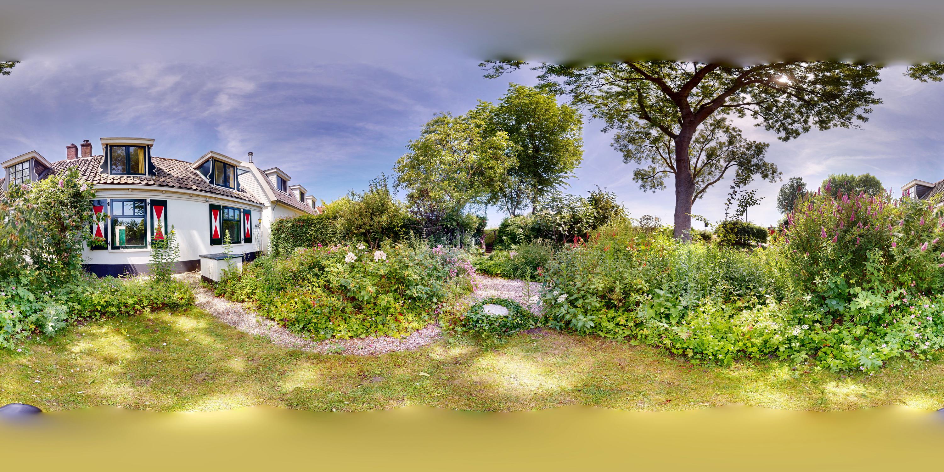 This authentic property offers a unique opportunity for those seeking a characteristic home in a special location, ready to be renovated entirely to one’s own taste. Situated along the Amsteldijk, the house lies slightly below road level and is partly hidden among the greenery. From the dike, a staircase descends to the front garden – a green space offering peace and privacy. On the right-hand side of the house, a narrow path runs along the façade to the front door, subtly set into the exterior wall.