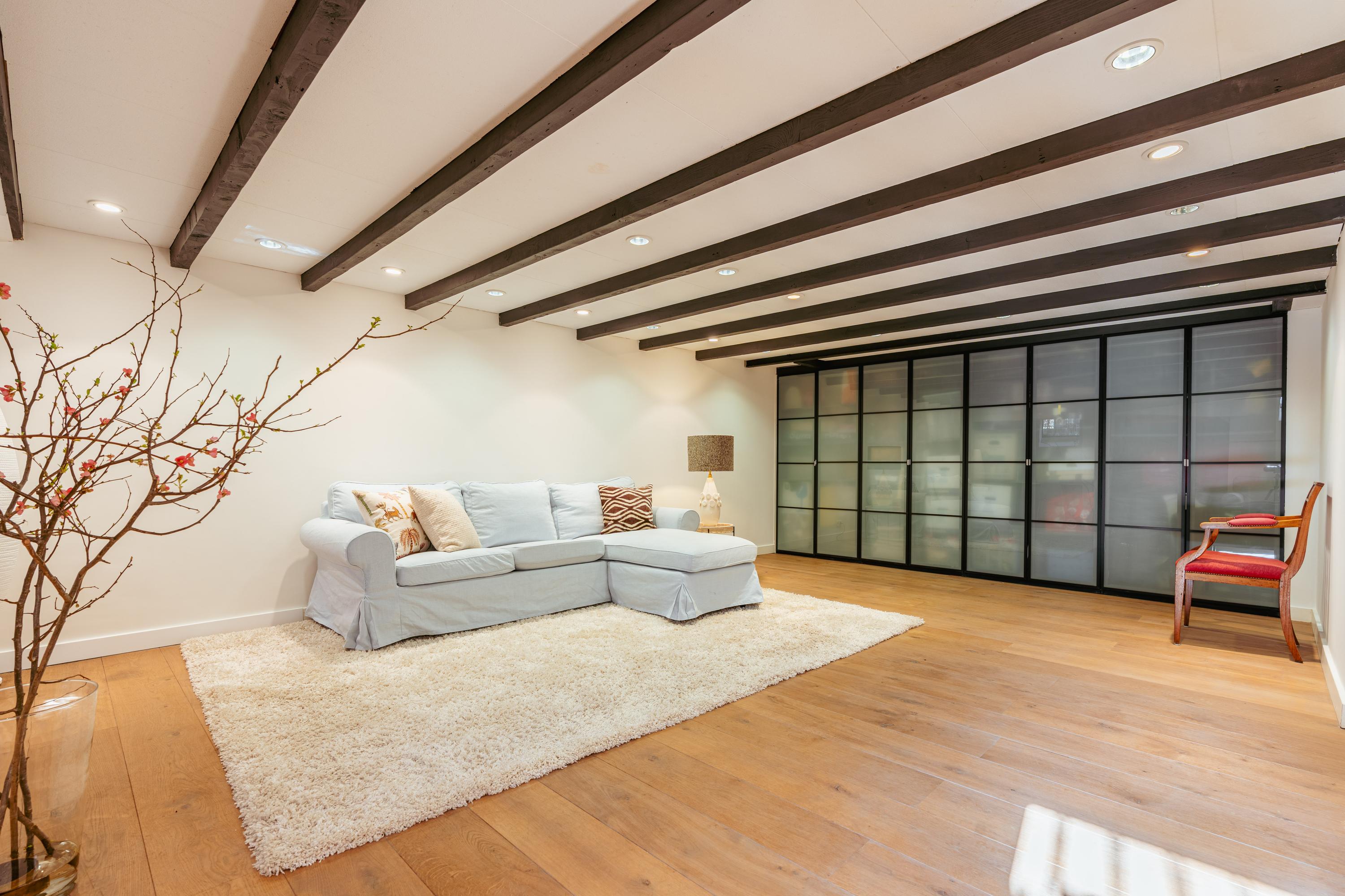 Accessible via the staircase in the hallway on the ground floor, the basement extends beneath a large portion of the house. This space offers an ideal setting for relaxation with family or friends. The basement is well-finished and comprises a large open area as well as additional storage space. It can easily be adapted to suit various purposes, such as a wine cellar, cinema or games room, or a combination of these with extra storage.