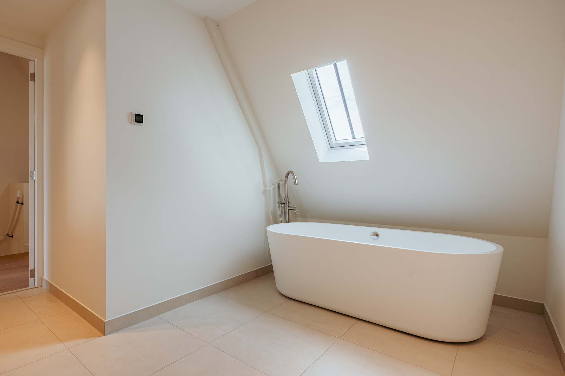 The fourth floor accommodates the master bedroom, which has French doors opening onto a delightful terrace running the full width of the property—an ideal spot to enjoy the sun and the view in peace. At the rear you’ll find a second bedroom, also with access to the terrace. The modern bathroom is fully equipped with a bathtub, shower and double washbasin. On this floor you will also find a separate WC, a practical laundry room for washing machine and dryer, and additional storage space.