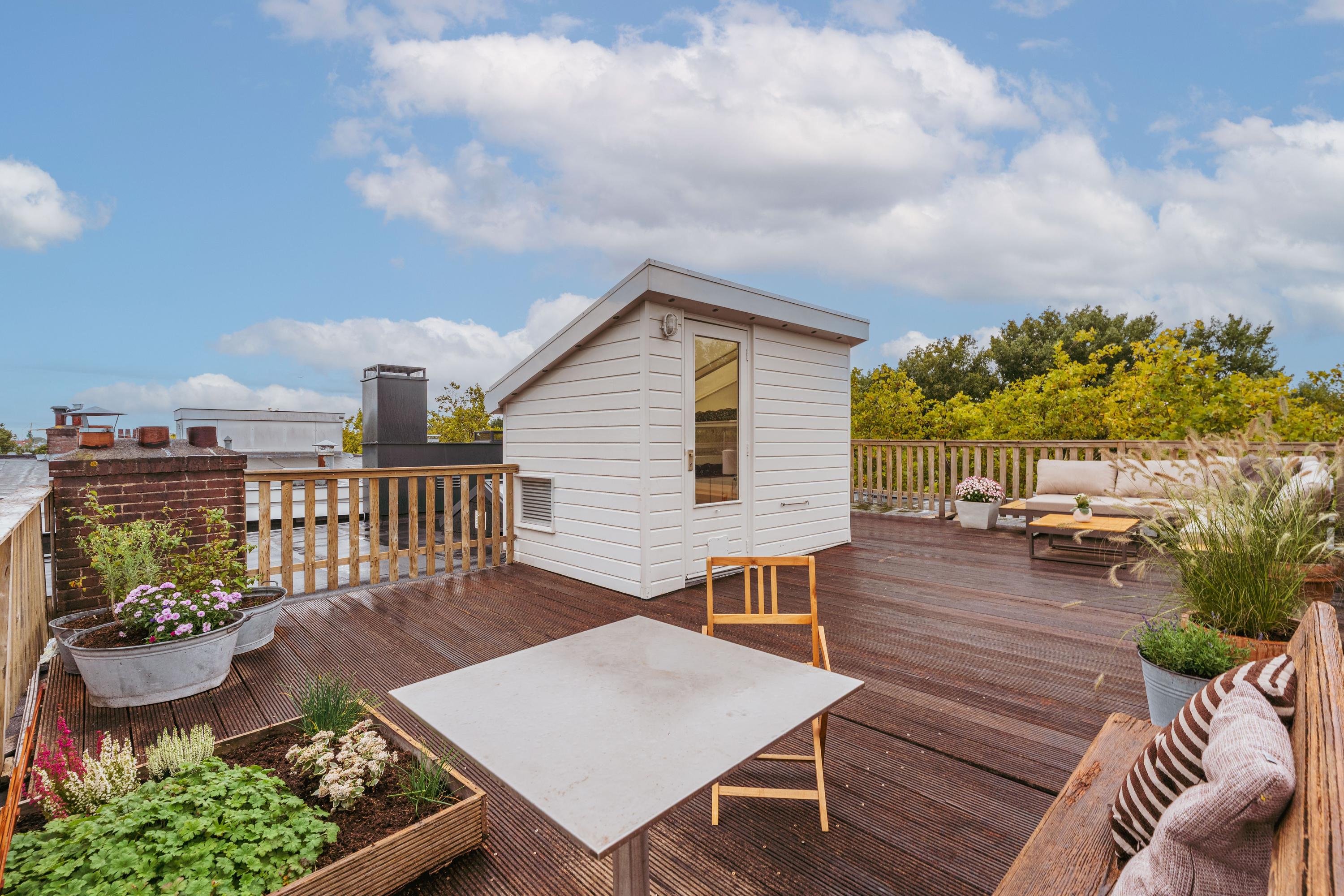 The true highlight of this property is the spacious roof terrace of approx. 38m². A fixed staircase leads to the top floor, providing direct access to this exceptional outdoor retreat. Extending across the entire width of the property, it offers unique, unobstructed views over the Sarphatipark and the city skyline.