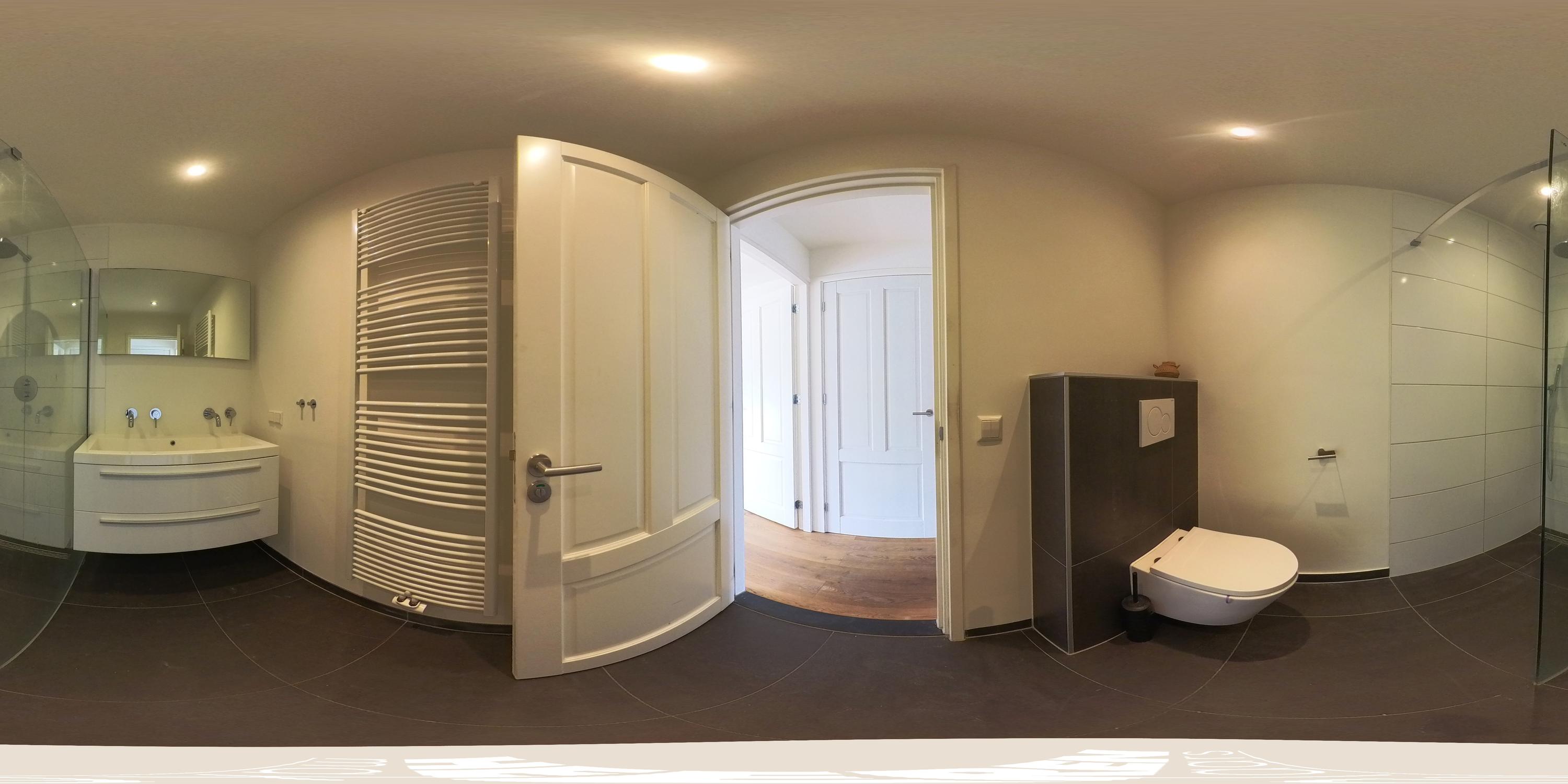 A fixed staircase brings you to the top floor, where the concept of reverse living is fully embraced. Here you will find the bright living room with open kitchen, immediately catching the eye with its wide windows and abundant natural light. The modern open kitchen is equipped with an induction hob, extractor hood, dishwasher, oven, and refrigerator. Adjoining is a practical storage room/closet. From the living room you step directly onto the sunny roof terrace, the perfect place to enjoy the outdoors in peace while taking in the beautiful view.