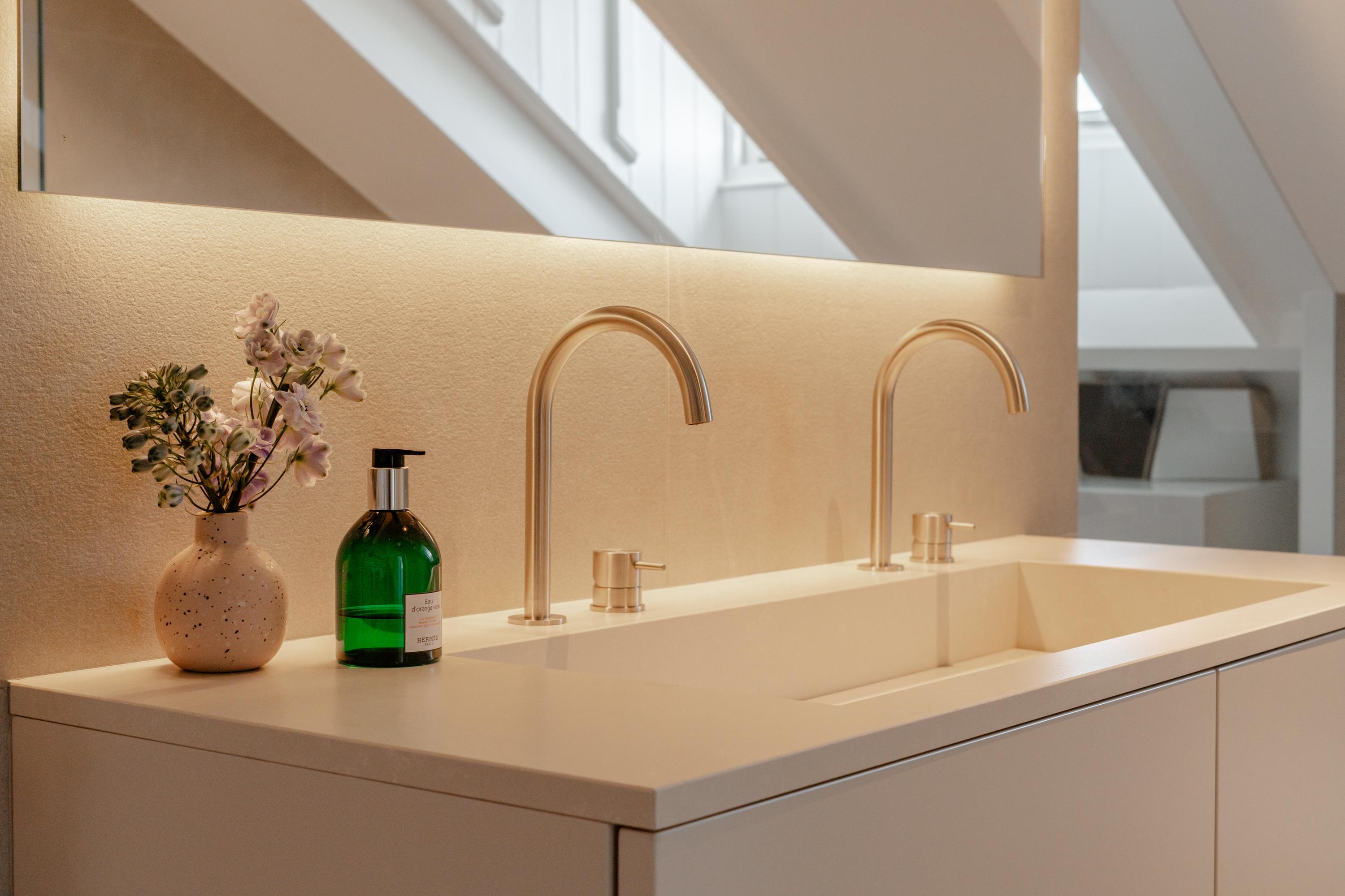 Thanks to the large windows, the space is filled with natural light and offers beautiful views over the characteristic rooftops of Oud-West, creating an open and serene living experience. The kitchen is equipped with high-end Siemens built-in appliances, an induction hob, Quooker tap, and a wine climate cabinet. Integrated air conditioning completes the comfort.