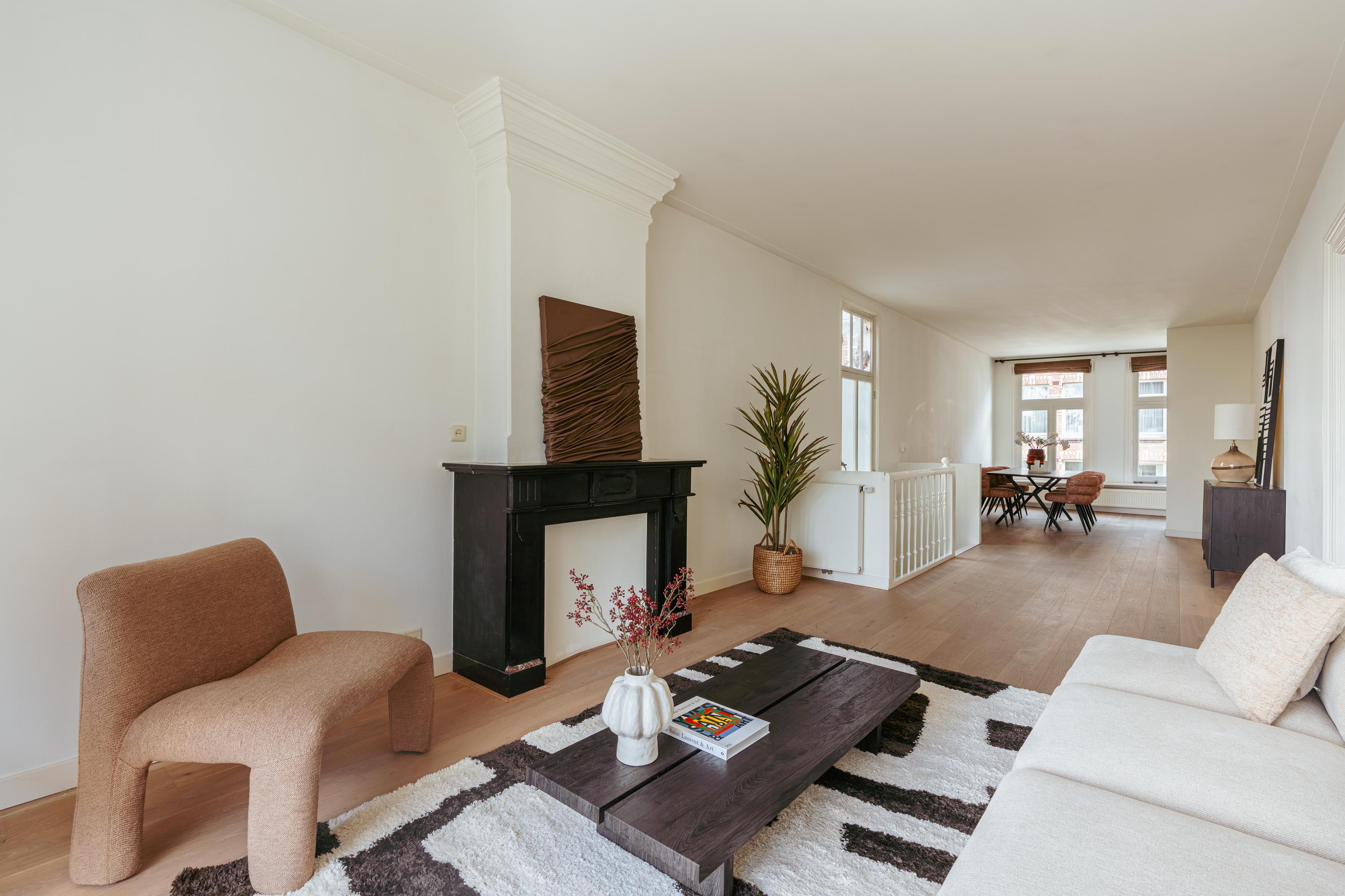 A bright and spacious duplex apartment of approximately 131 m² spread over two floors, featuring three bedrooms, two bathrooms, two sunny balconies, and a modern kitchen with high-quality appliances. The combination of space, light, comfort, and location on the sought-after Wanningstraat makes this an exceptionally pleasant and atmospheric home.