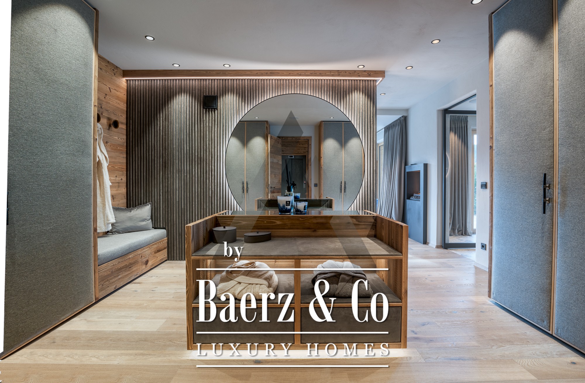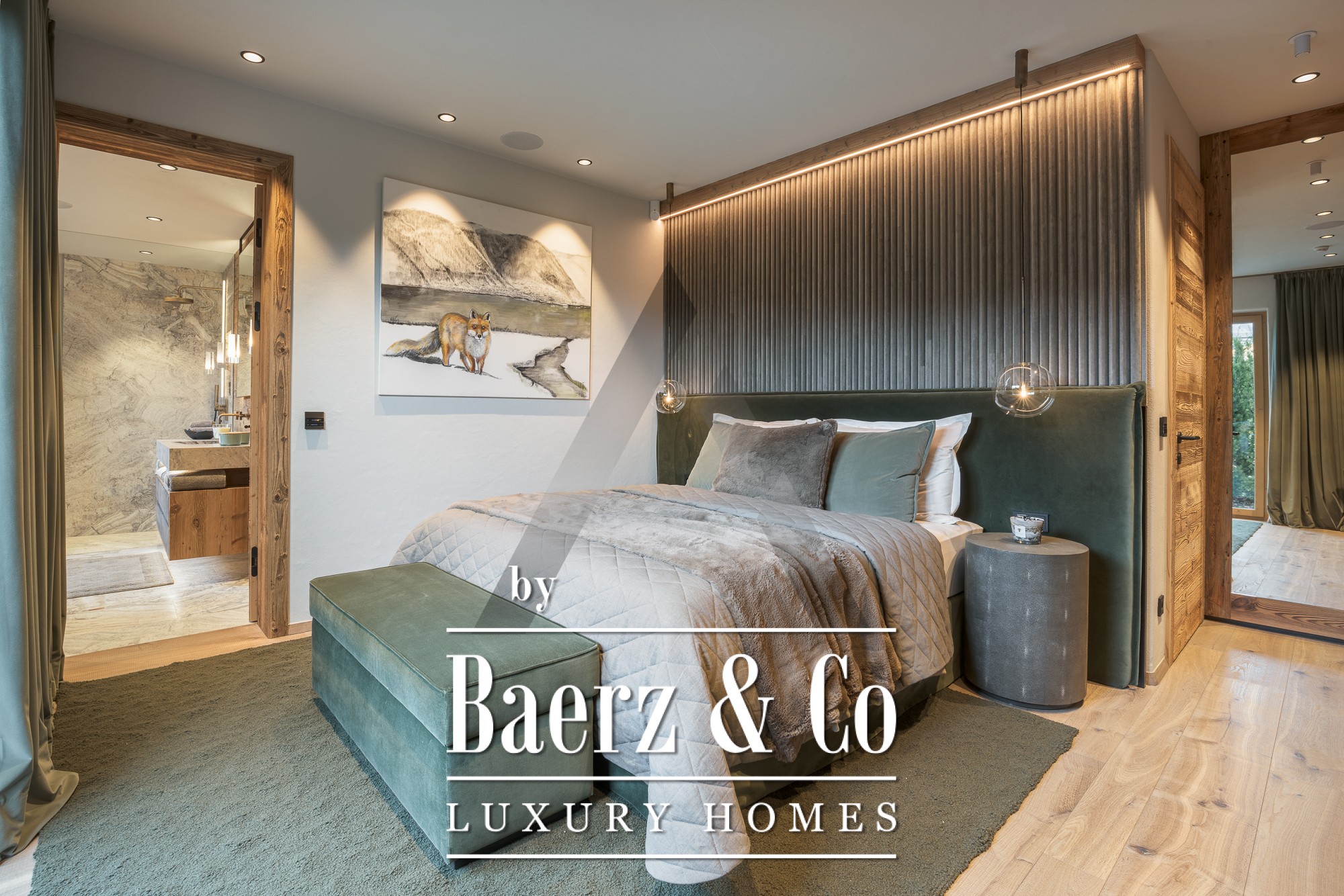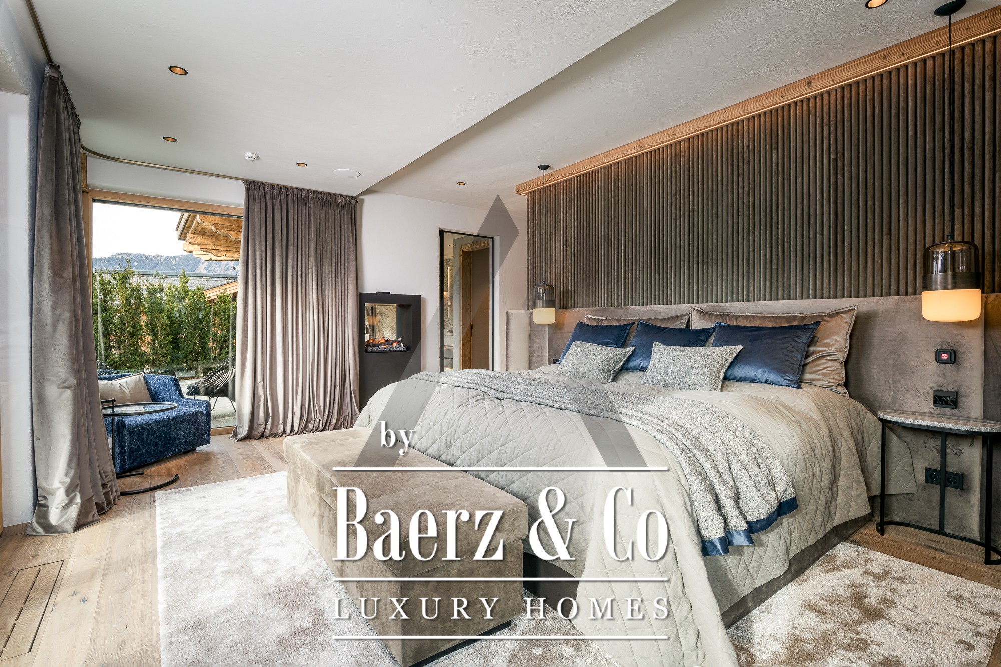 Luxury villa Aurach bei Kitzbühel stands on a sunny plateau overlooking the Wilder Kaiser and rolling mountain landscapes. Completed in early 2024, this exceptional residence offers approximately 400 m² of living space, thoughtfully designed to balance modern luxury with authentic Alpine character. Five en-suite bedrooms provide flexibility of use, with three already furnished and two left adaptable for alternative needs such as a gym or study.