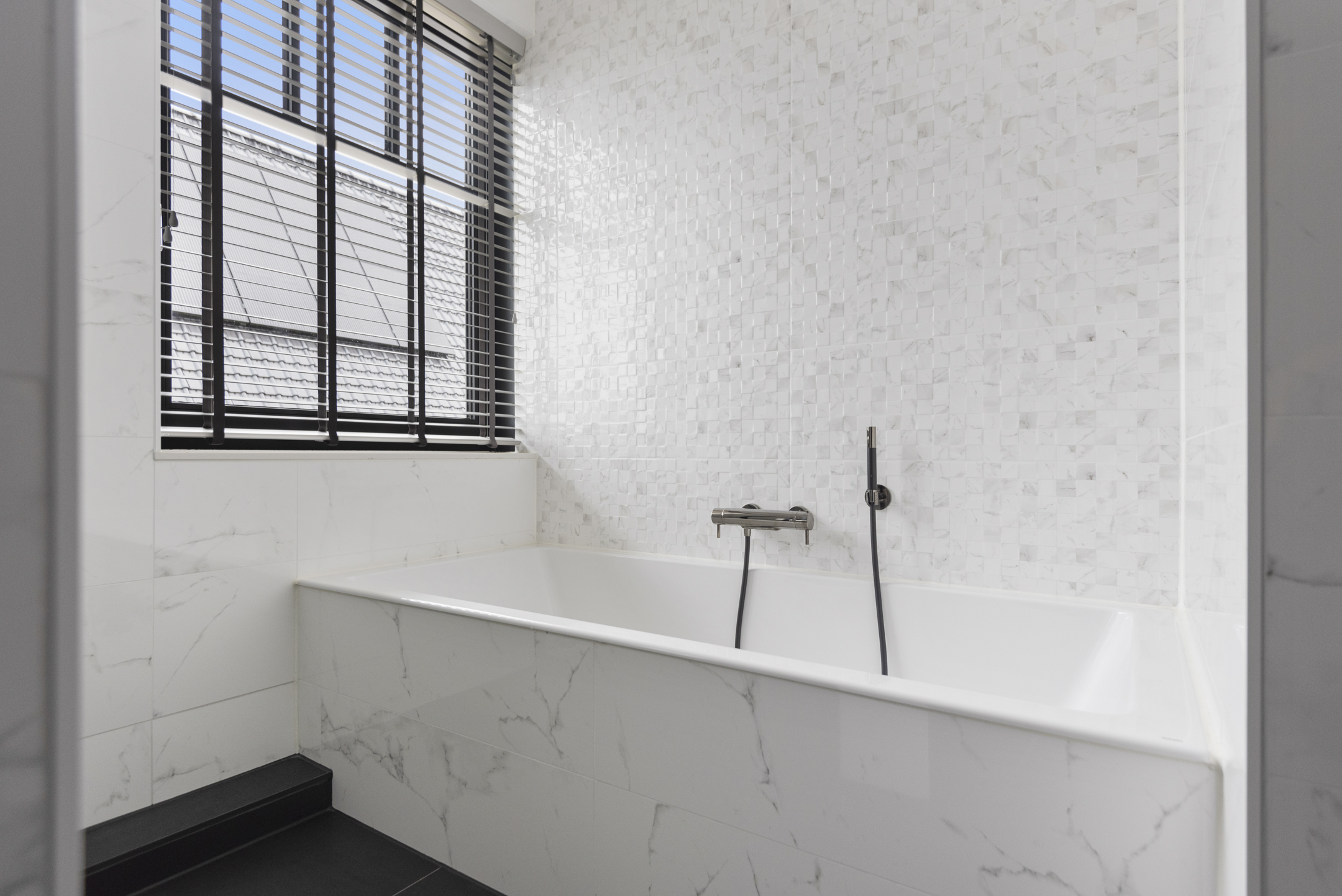 Through multiple French doors from the living room, you have access to the garden. The beautifully landscaped backyard features several lounge areas, a covered patio with a heater and access to the external garage.