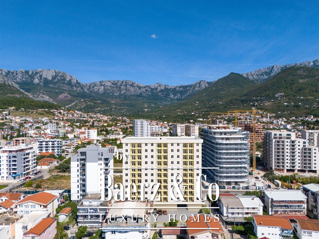 Apartment Bar offers a rare perspective on Montenegro’s Adriatic coast. Just 800 m from Bar’s city centre, this 114 m² apartment brings together panoramic sea and mountain views from the tenth floor of a newly built, ten-storey residence scheduled for completion in February 2028. The beach is a 500 m stroll, with restaurants and shops in close proximity, emphasizing a lifestyle rooted in both convenience and connection to nature.