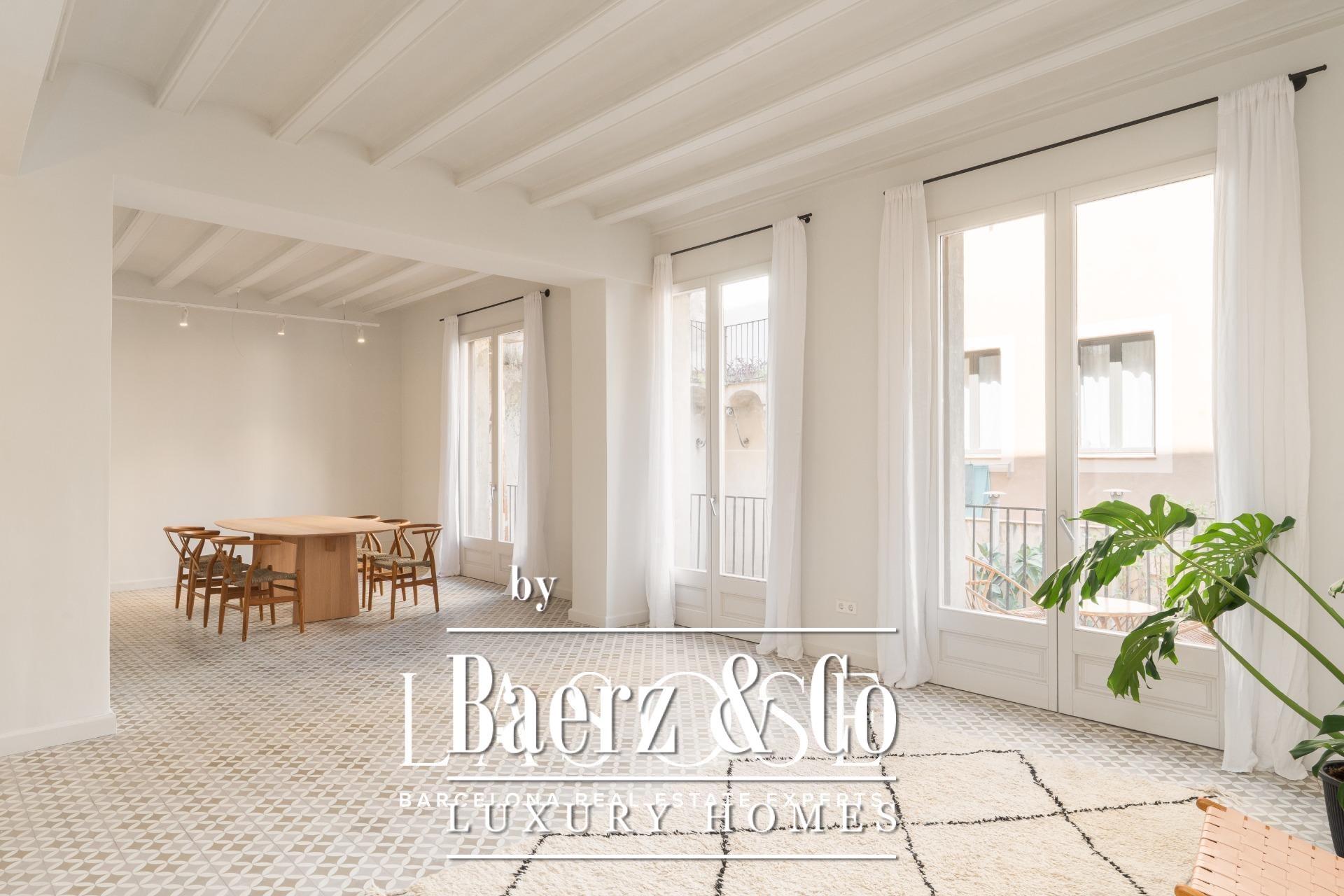 modern finishes. . - Exceptional tranquility, faces a spacious interior courtyard, away from city noise. . - Central ducted air conditioning, heating and cooling for year-round comfort. . - 7 m² balcony and a lovely communal rooftop terrace, perfect spots to relax and enjoy the views. . - Brand-new exterior joinery, premium thermal and acoustic insulation. . . And there’s more! The building has an approved project for elevator installation, a future upgrade that will further enhance the property’s value. . . Living in El Born means enjoying gourmet dining, exclusive boutiques, and a vibrant cultural scene, all just steps from your doorstep. Ready to fall in love with this architectural gem? . Contact us today to schedule a viewing!