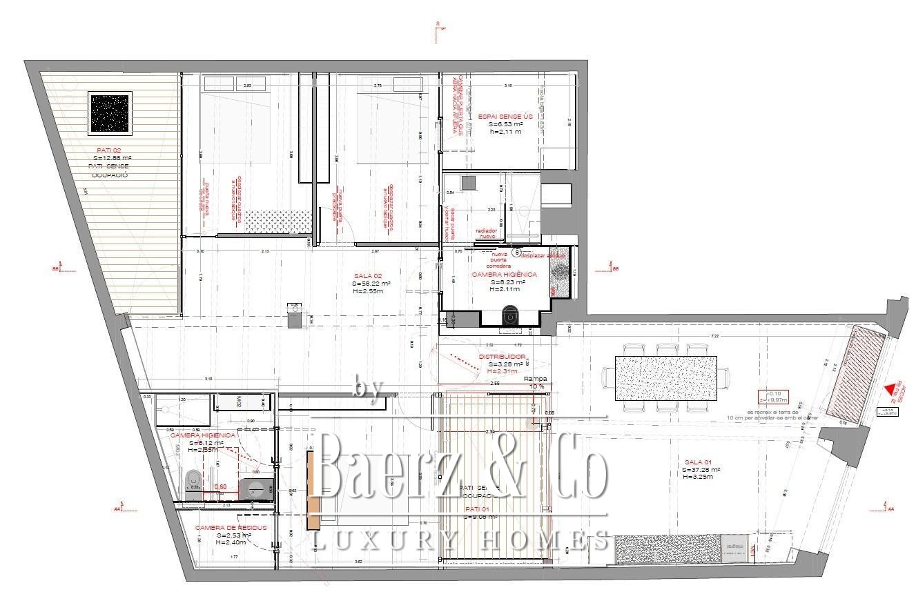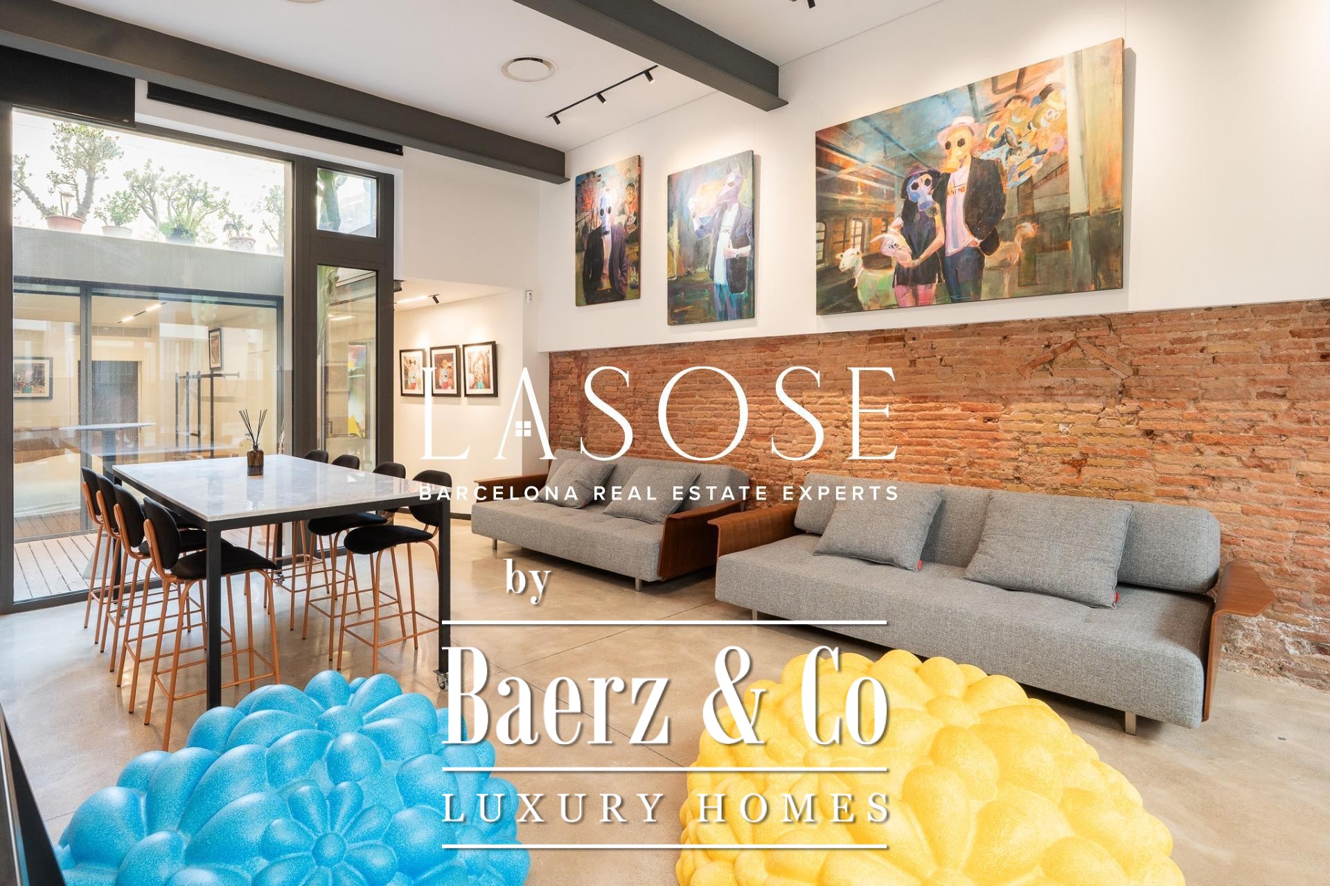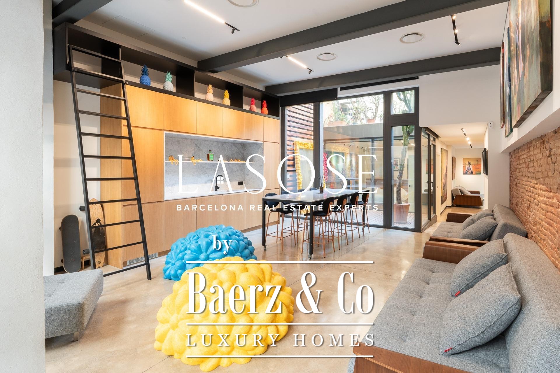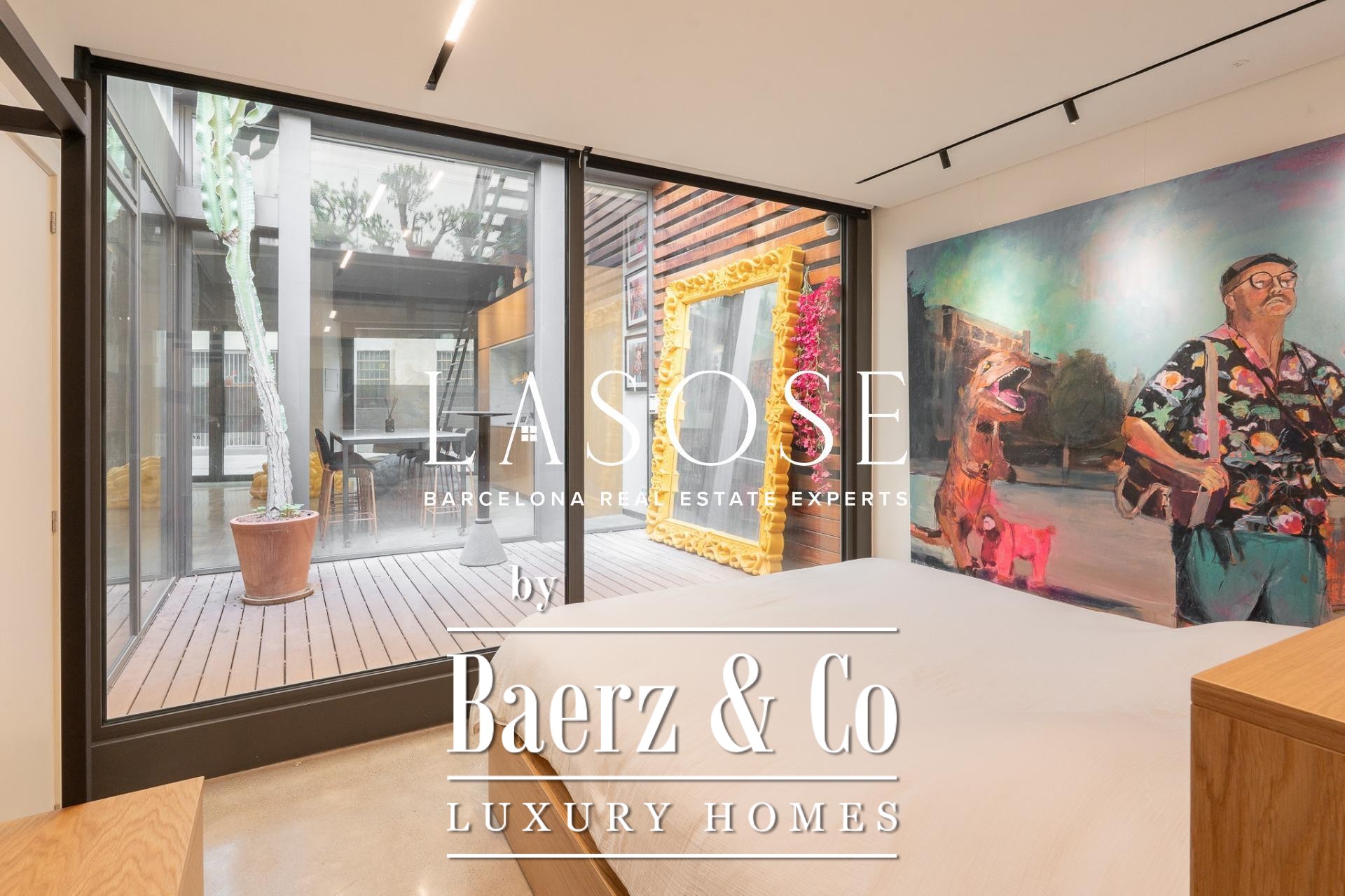 Apartment Barcelona offers a distinct spatial experience in the heart of the city. From the moment you enter, an immediate sense of calm and spaciousness unfolds, complemented by carefully articulated interior patios that draw midday sun deep into the living space. The property extends across 105 m², encompassing three bedrooms and two bathrooms, with polished concrete floors and anti-intrusion glazing establishing a refined yet secure atmosphere. Its open-plan footprint results from the transformative merger of four units into a singular living environment, now fully furnished with curated design pieces and appliances.