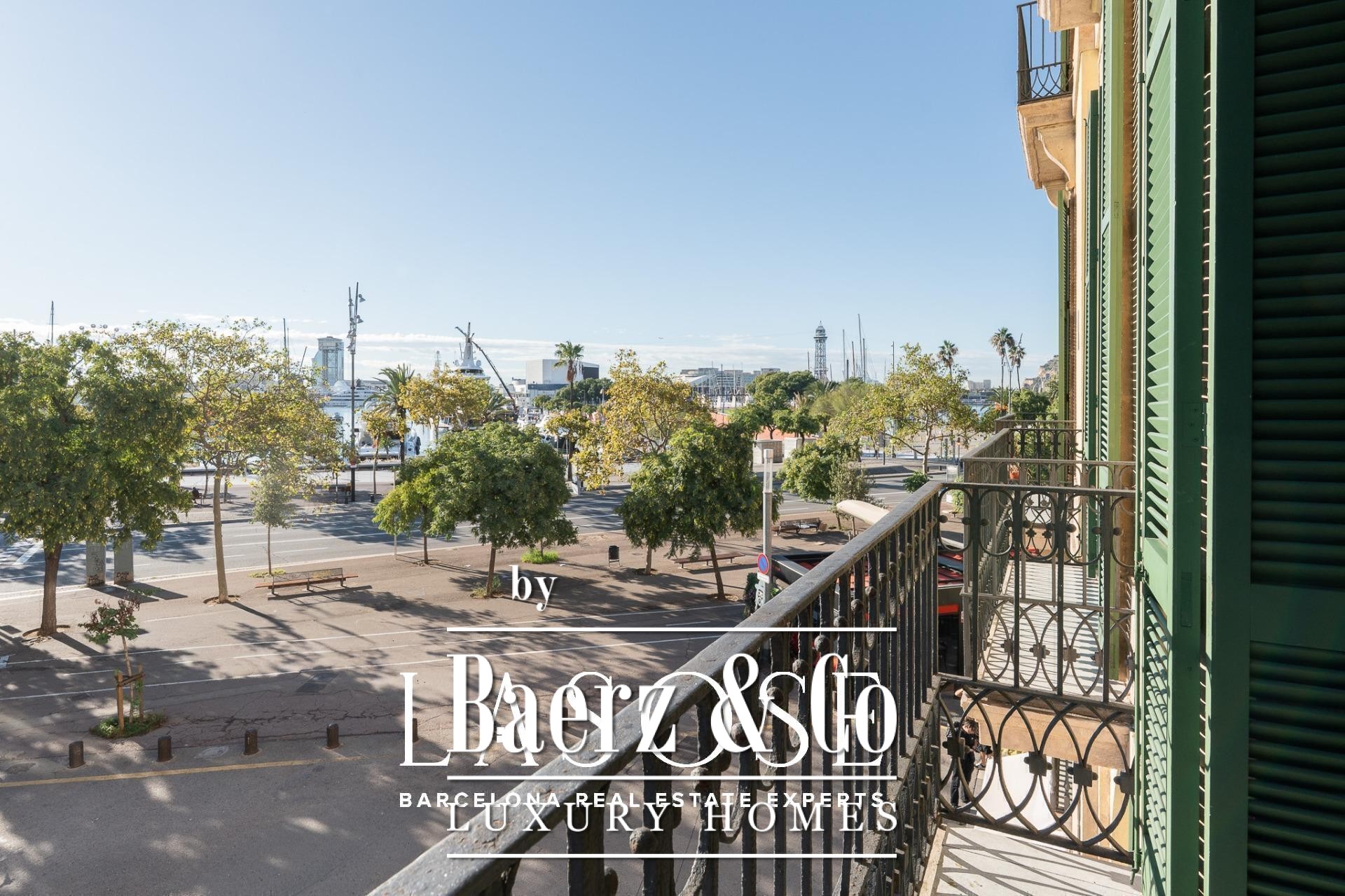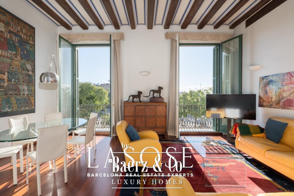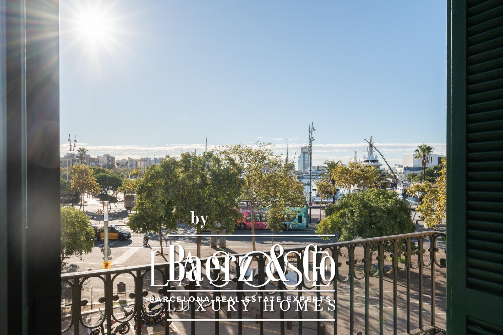 Apartment Barcelona sets its stage within a historic building overlooking the city’s marina. This apartment, spanning 122 m², occupies a distinguished address on Carrer Llauder and presents a rare interplay of heritage and contemporary living. Step inside to a volume defined by 3.8-meter ceilings, exposed wooden beams, and Catalan vaulted ceilings with hand-painted details. Wrought-iron balconies frame the open sea and the greenery of Las Ramblas de Mar, filling each room with Mediterranean light.