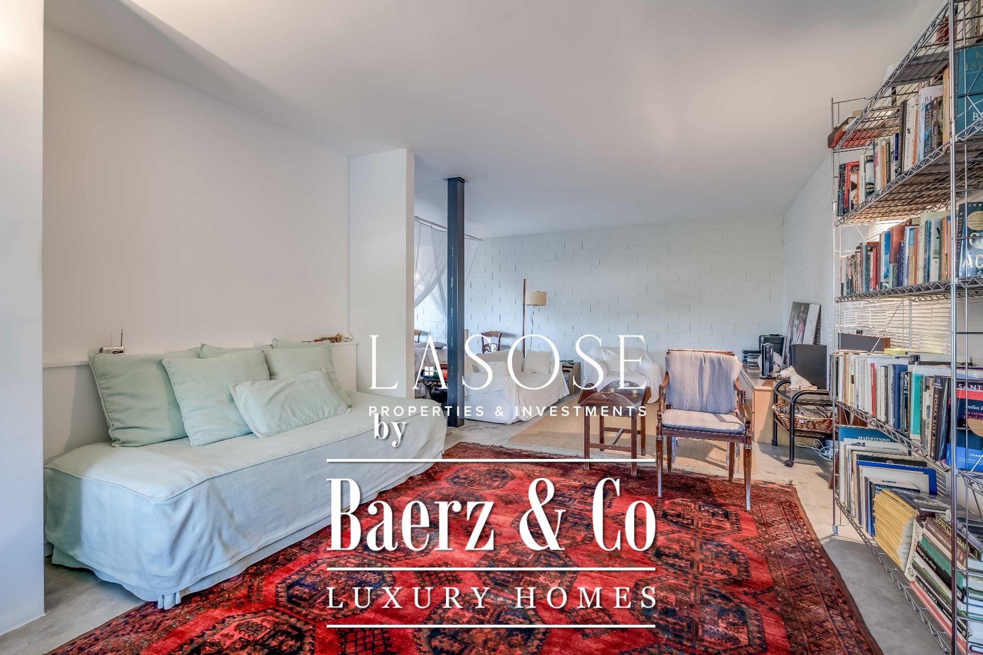 Upstairs, two generous bedrooms are accompanied by a spacious dressing room and a full bathroom. Large windows introduce abundant natural light, paired with parquet underfloor heating for comfort. On the lower floor, a self-contained 115 m² summer apartment includes a dressing room, bathroom, and garden access. Outdoor amenities feature a private pool and landscaped spaces, all within a discreet residential enclave.