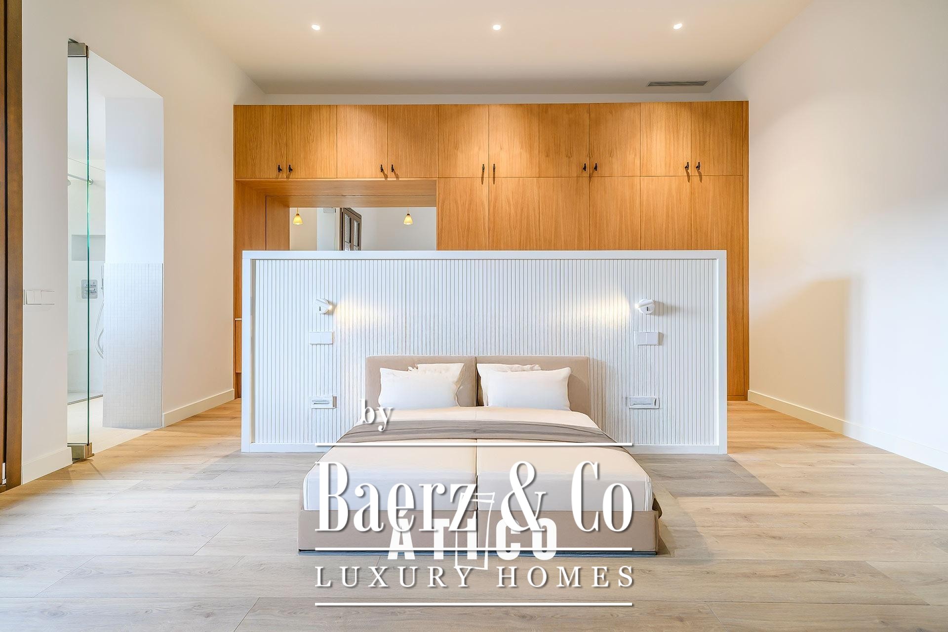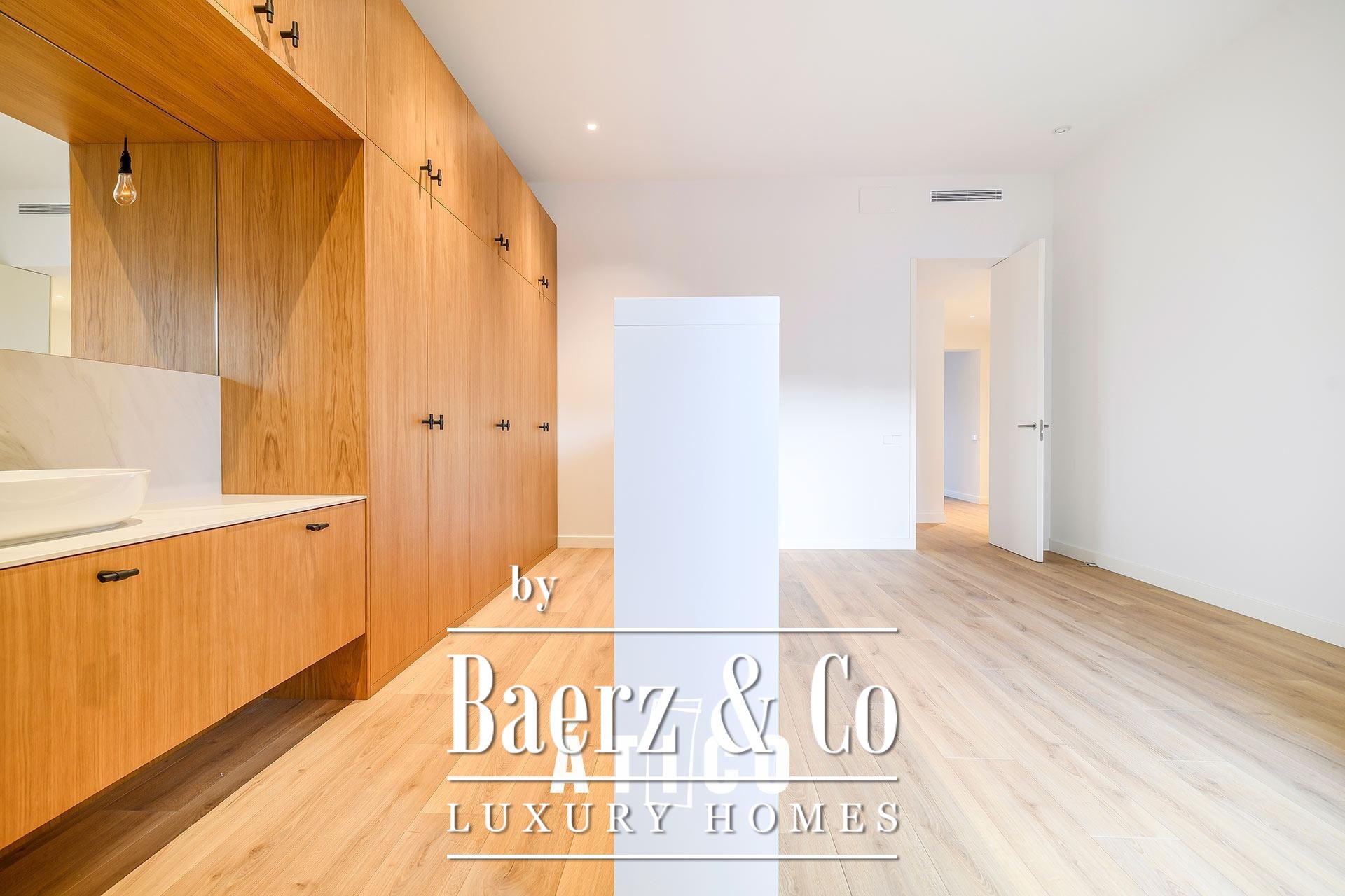 This duplex apartment Barcelona stands as a testament to refined urban living, offering 212.51 m² of newly renovated space across two distinct floors. Designed with flexibility in mind, its independent entrances provide options for privacy, work, or hospitality, allowing seamless transitions between day and night zones or dual-purpose living. Upon entry, a modern staircase defines the interior, lending the home a confident architectural rhythm and connecting both levels.
