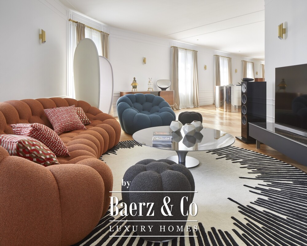 Penthouse Barcelona represents a rare convergence of classic architectural heritage and refined contemporary living. This meticulously renovated penthouse, set within an elegant corner building in the Eixample district, commands attention with 274 m² of living space anchored by a remarkable 100 m² private terrace. Sunlight pours through six exterior balconies, illuminating an open-plan interior where the living room, dining area, and designer kitchen flow seamlessly together. The penthouse Barcelona experience is further enhanced by a bespoke studio and a sculptural staircase ascending to the crown jewel of the home—an expansive rooftop oasis.