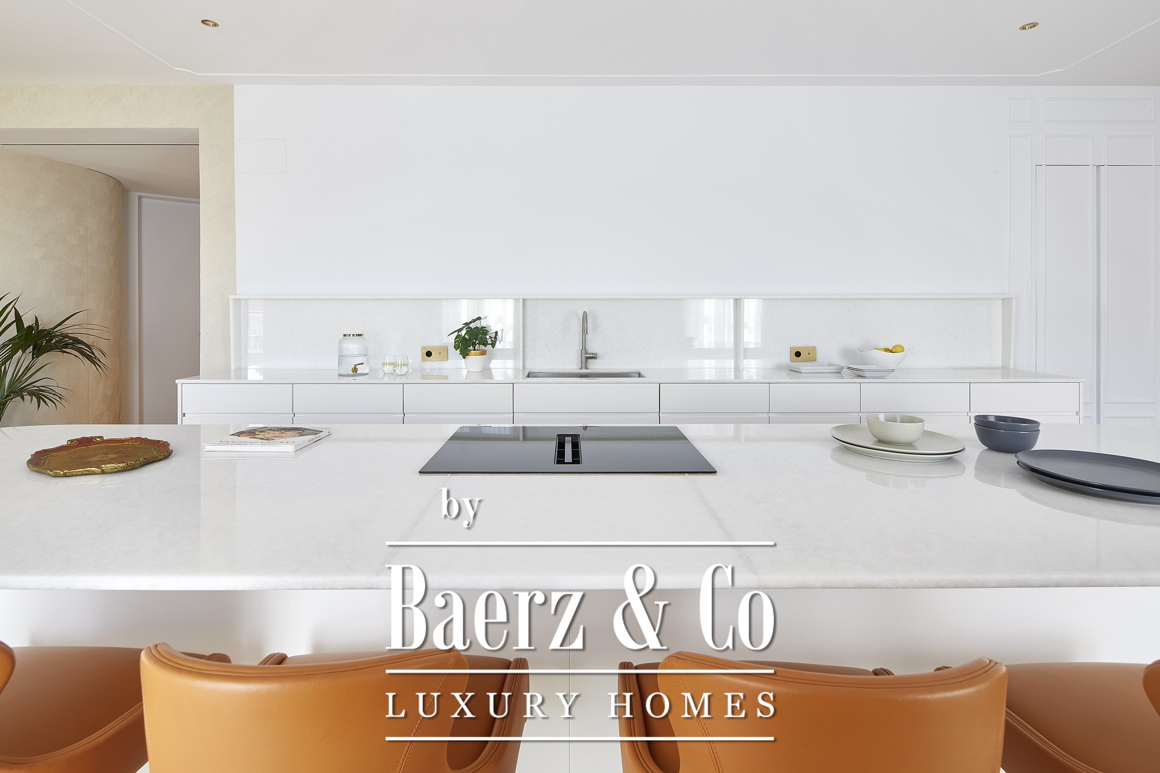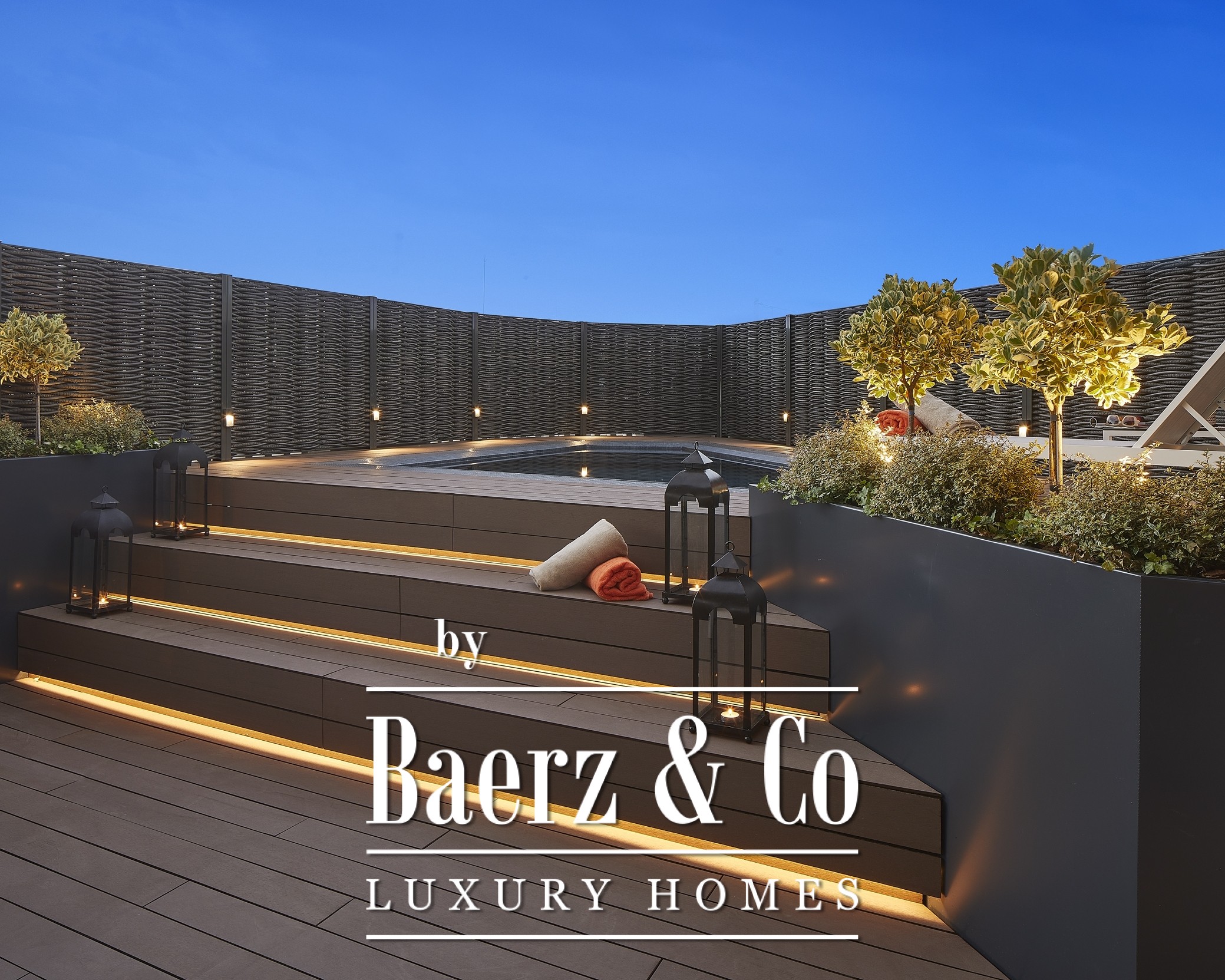 This private terrace, optimally oriented for sun year-round, features a summer kitchen, al fresco dining, secluded chill-out zones, and a private swimming pool, all designed for indulgence in Barcelona’s Mediterranean climate. Three en suite double bedrooms frame the sleeping quarters, each with built-in wardrobes and exterior views. The master suite offers a serene retreat, complemented by a marble-clad bathroom with large bathtub, separate shower, dressing area, and a luminous private balcony.
