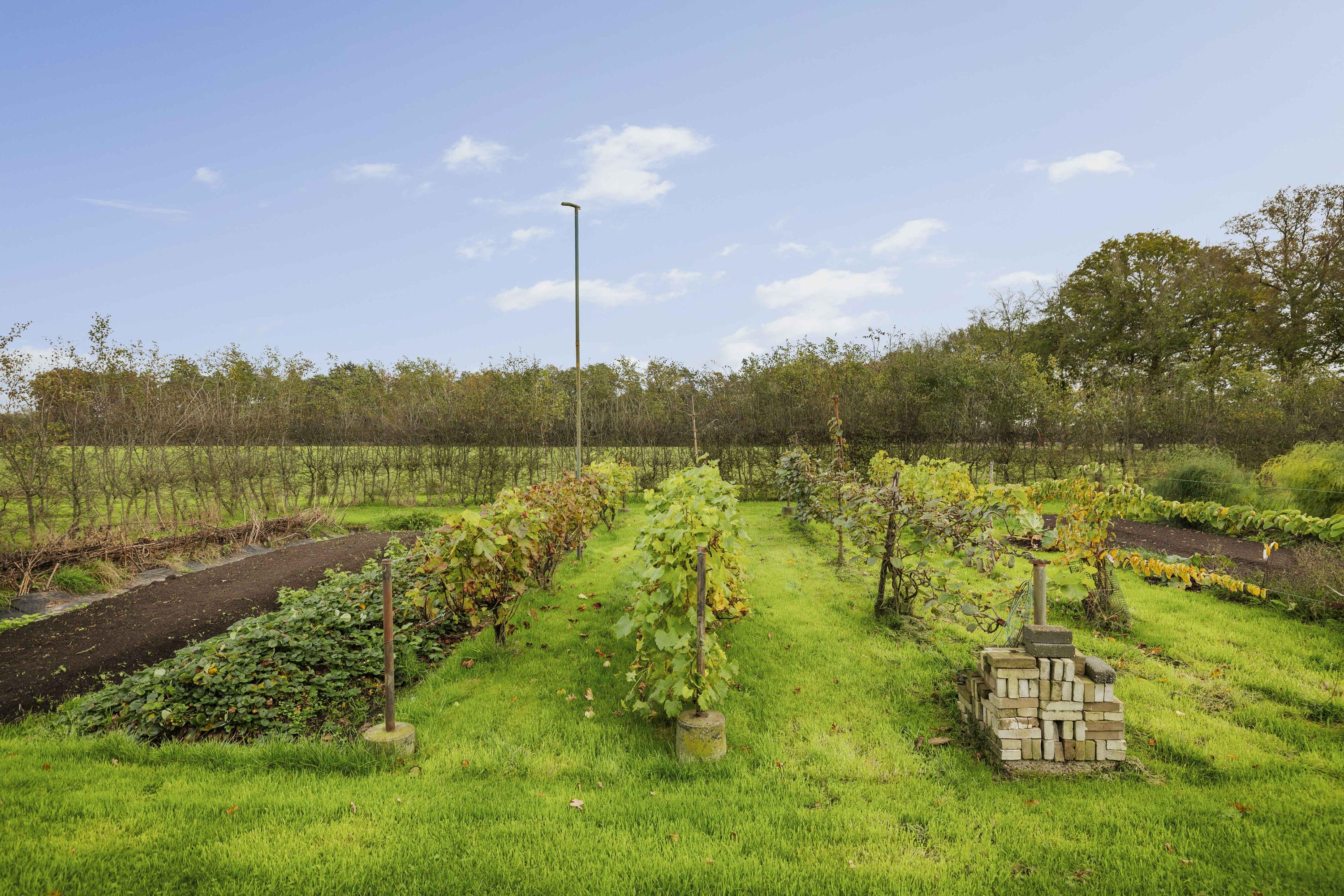 There is also space for small livestock and/or chickens around the old orchard, with a chicken coop in the shape of a haystack and a large run. Next to the large pond, there is also a spacious vegetable garden, with plenty of room to grow your own vegetables and (cut) flowers.