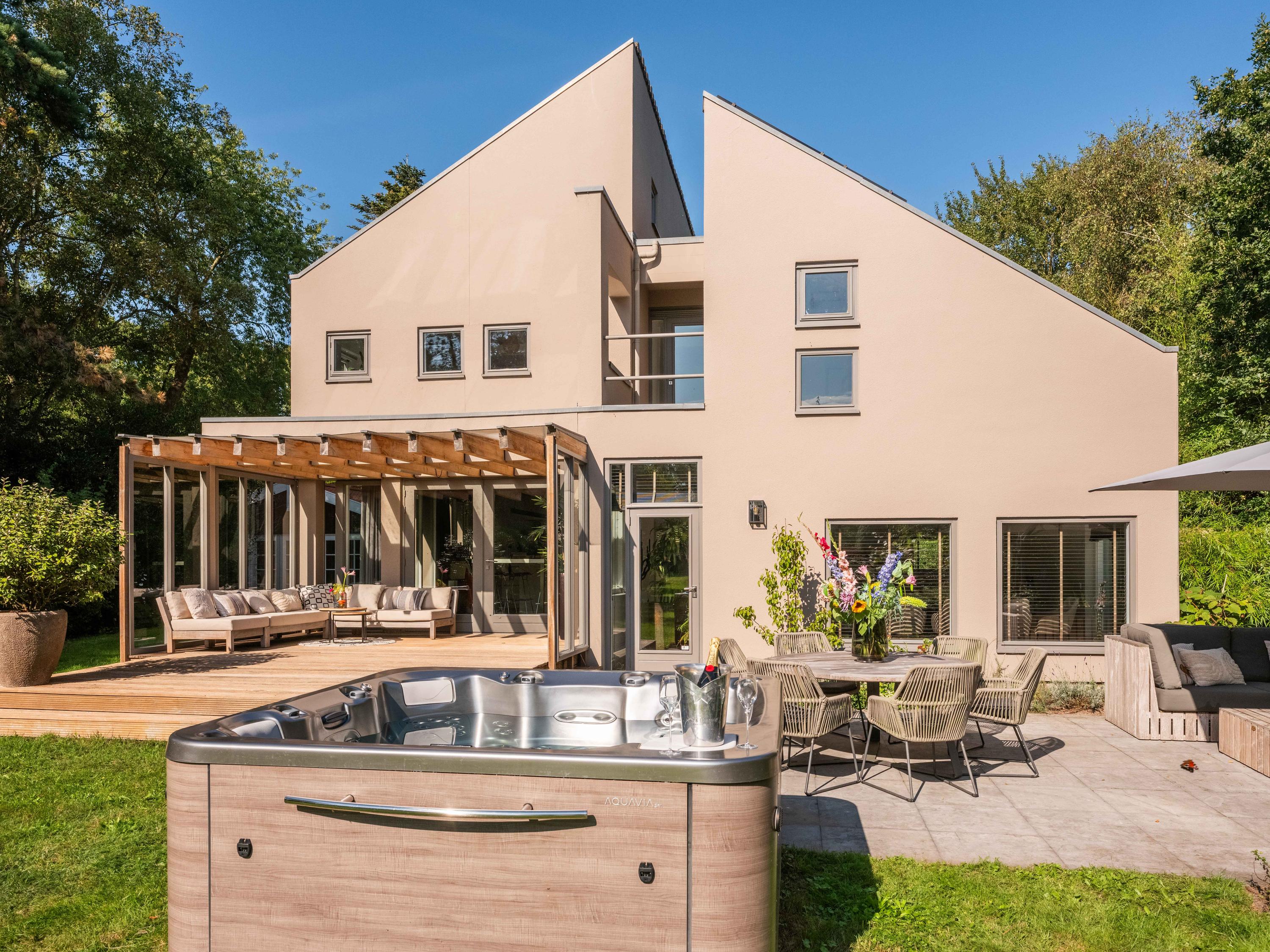 Villa Bergen stands in a singularly tranquil setting, with expansive meadow views and total privacy anchored by an artistically gated entrance. This villa Bergen estate quietly fuses history and modernity. At the front of the 2,684 m² plot, a mid-18th-century thatched farmhouse, meticulously renovated in 2014, provides a distinguished introduction to the property. This outbuilding is fully equipped for use as a home office, studio, or informal care—its flexibility matching its provenance.
