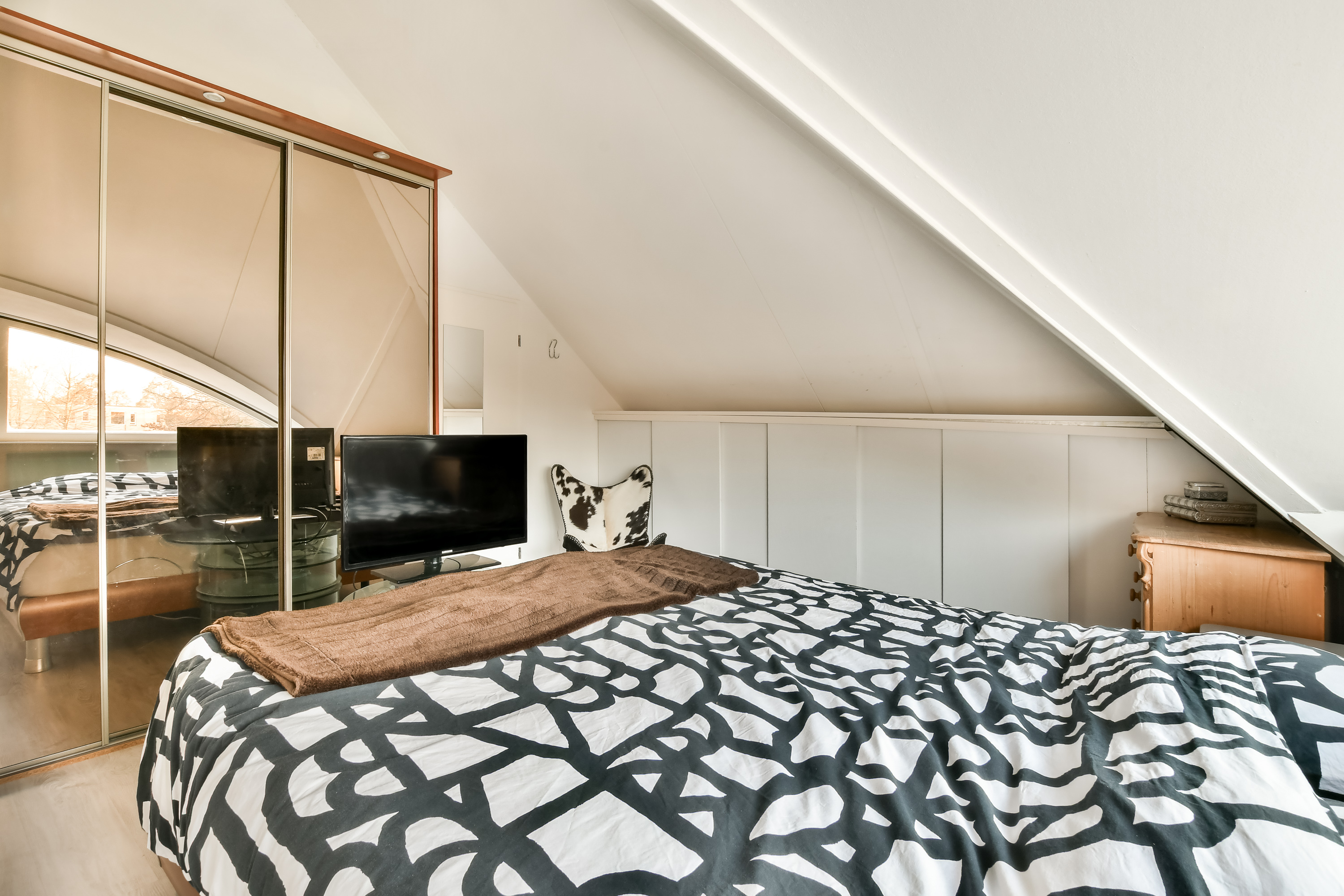 De ruime vierde slaapkamer aan de voorzijde beschikt over vaste kasten, een dakkapel en een laminaatvloer.