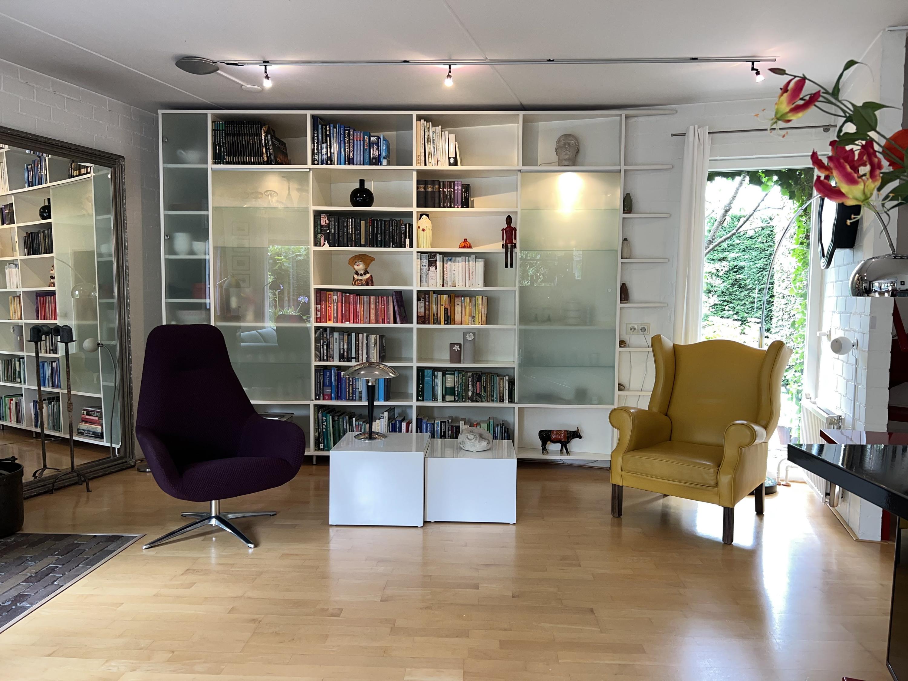 A very spacious villa (330 m²) designed by an architect with a truly unique character. With 6 bedrooms, 2 bathrooms, and an indoor multifunctional space (64–76 m²) with its own entrance. Quietly located, accessible from a child-friendly, low-traffic square. You can park your car in your own generous parking space.