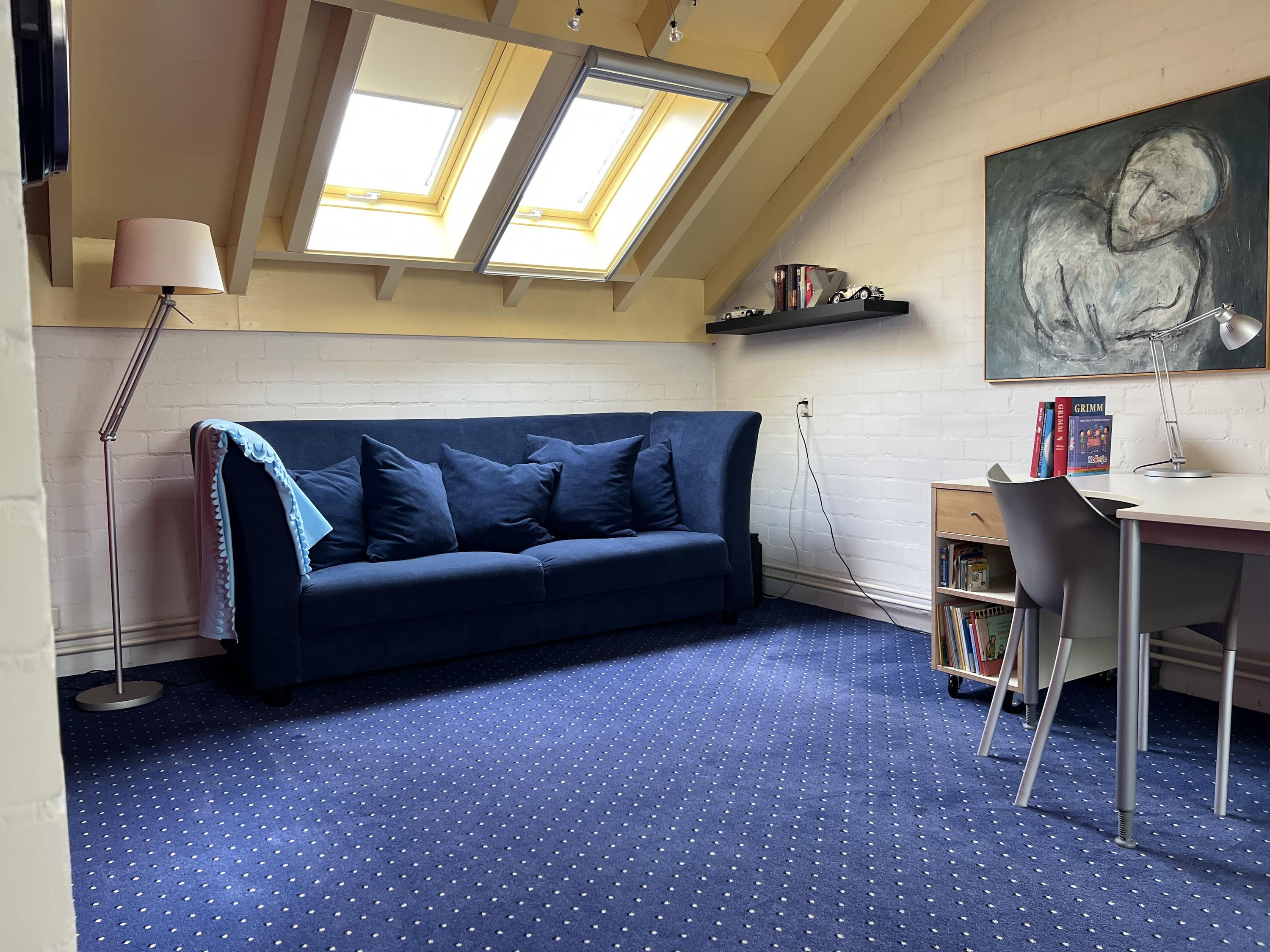 Large landing with plenty of storage space, a Velux skylight, and access to 2 bedrooms and the technical room.