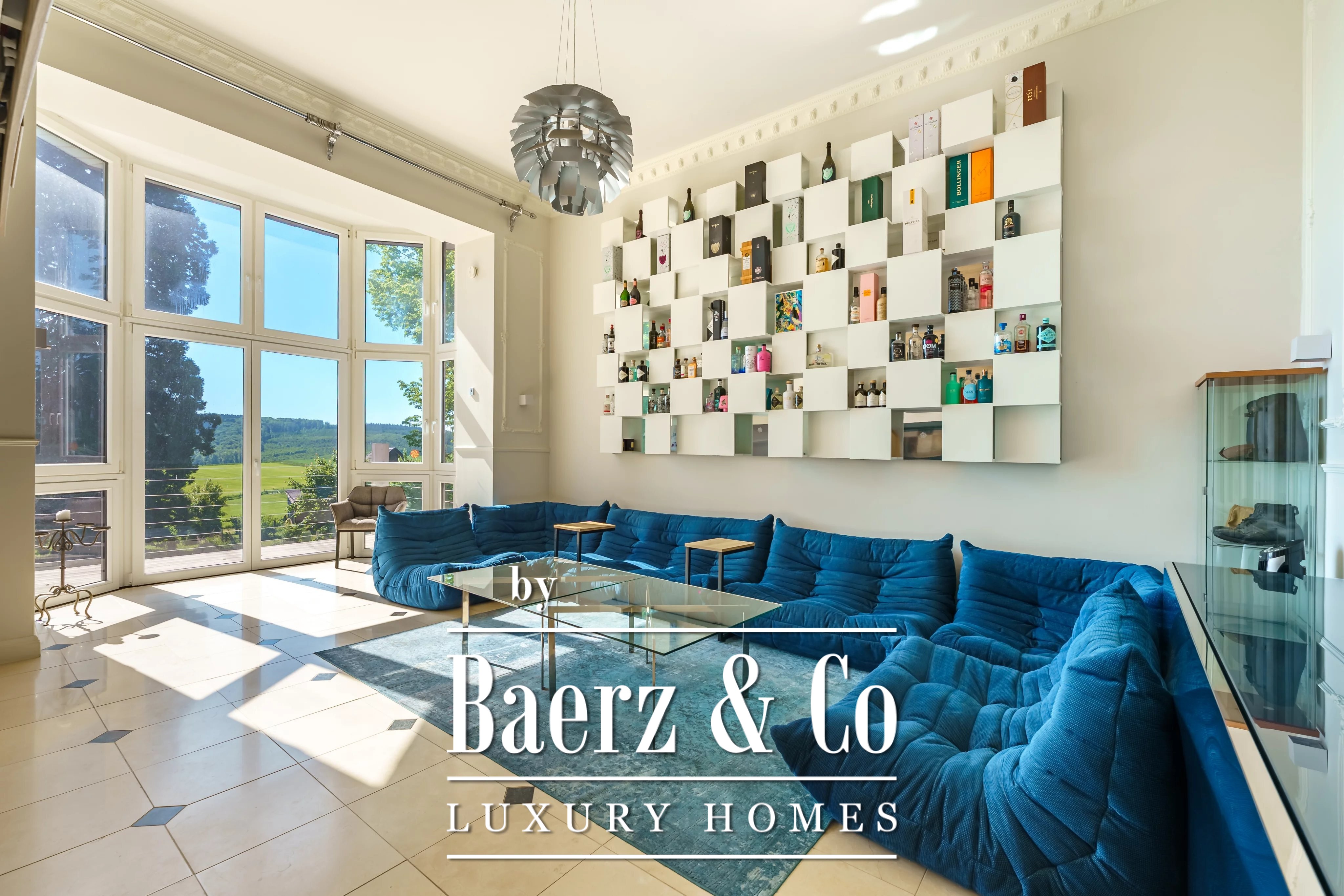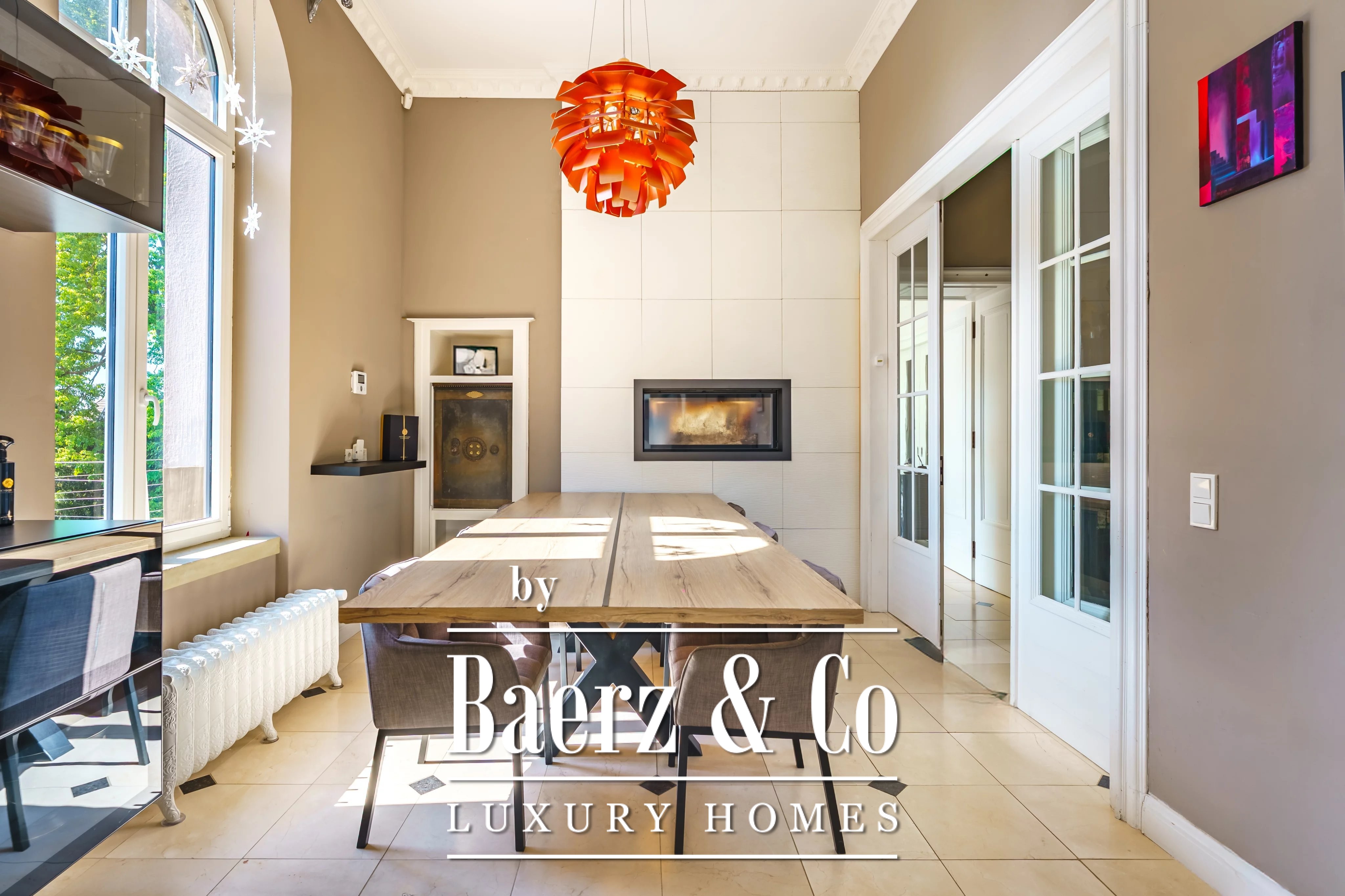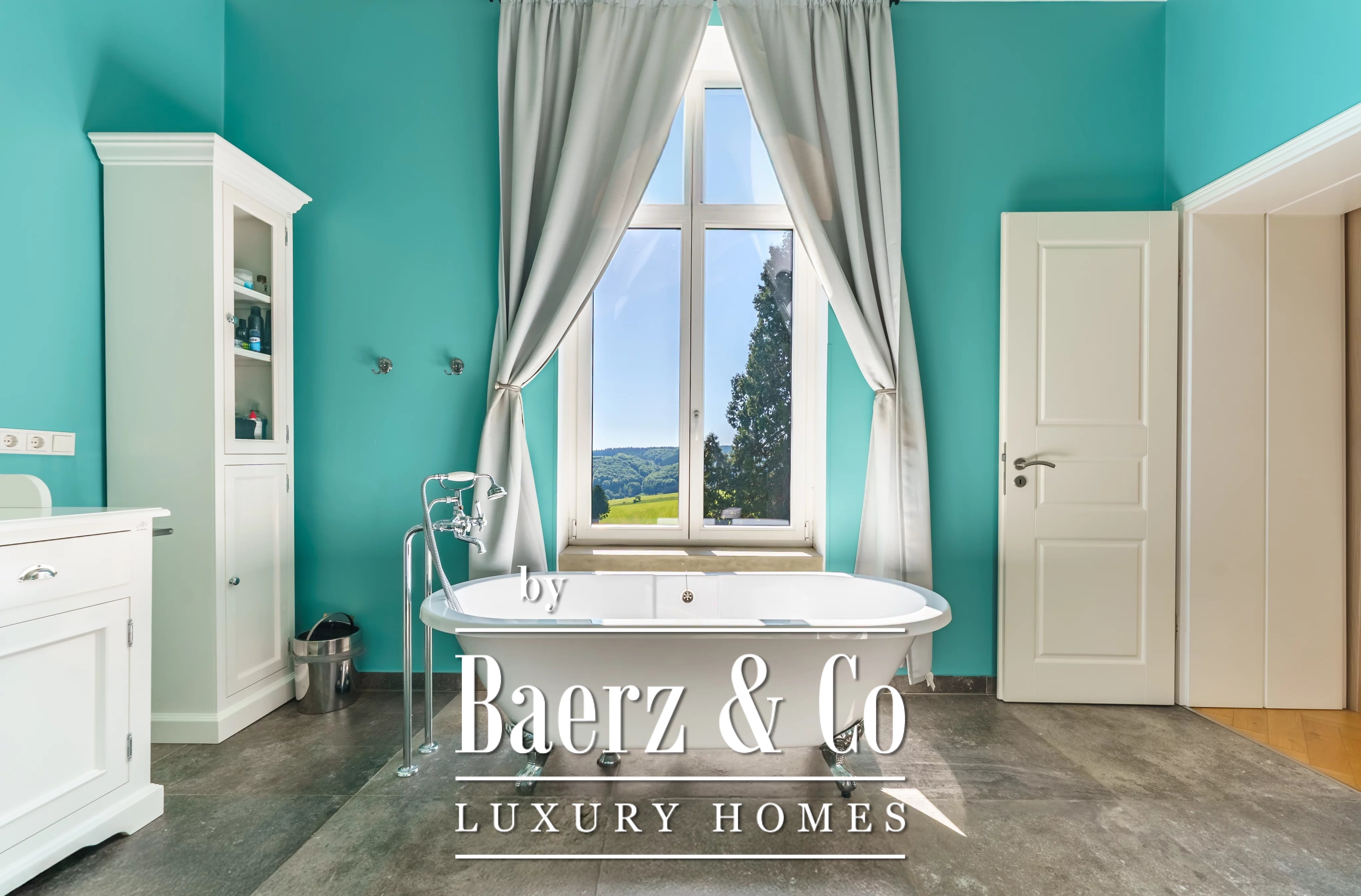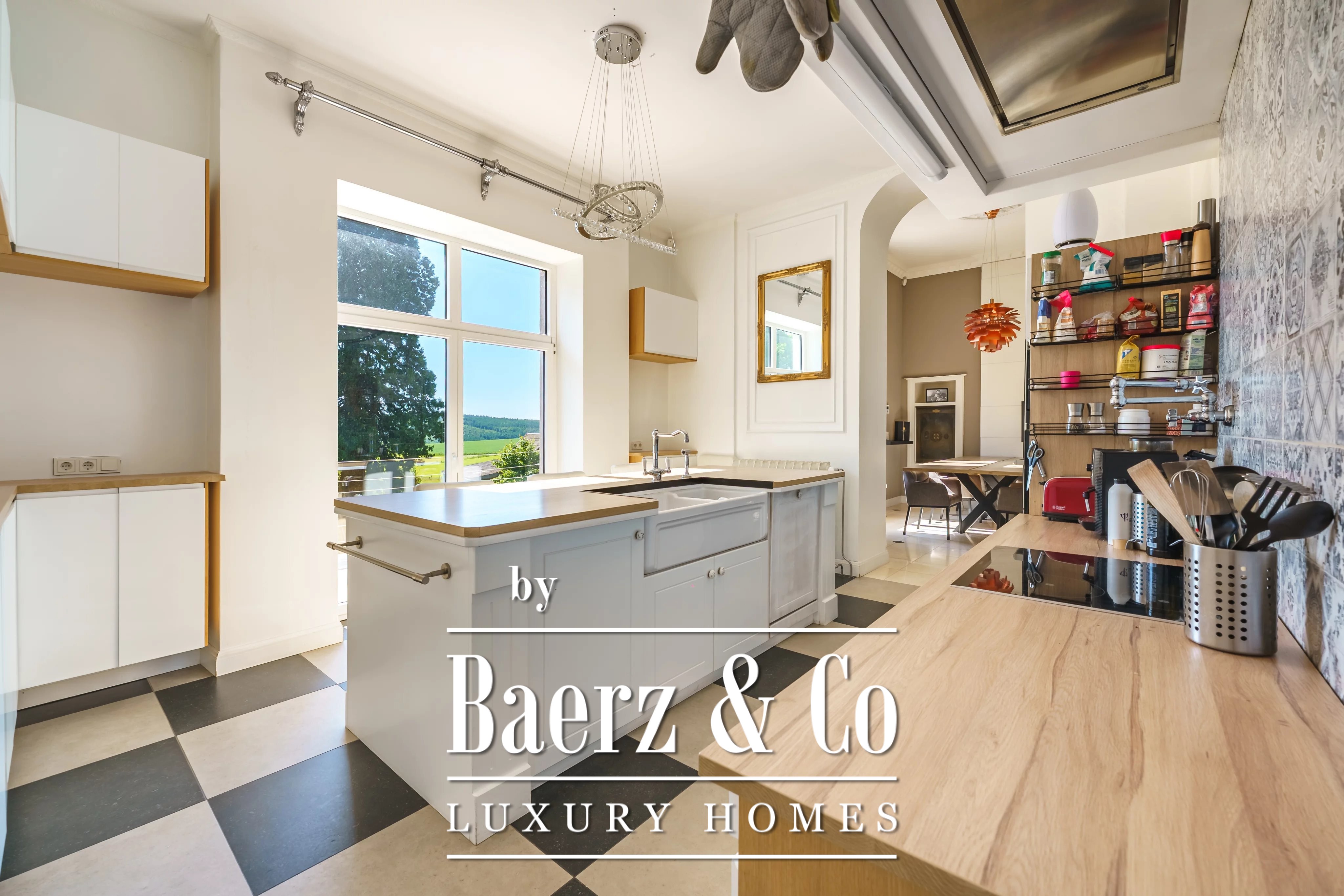 This manor house Boevange offers a distinguished setting where heritage and modernity are held in quiet balance. Originally constructed in 1909 and thoughtfully renovated in 2022, the property resides within 12,180 m² of landscaped grounds, presenting 375 m² of living space and ceilings that rise four meters above subtle parquet floors.