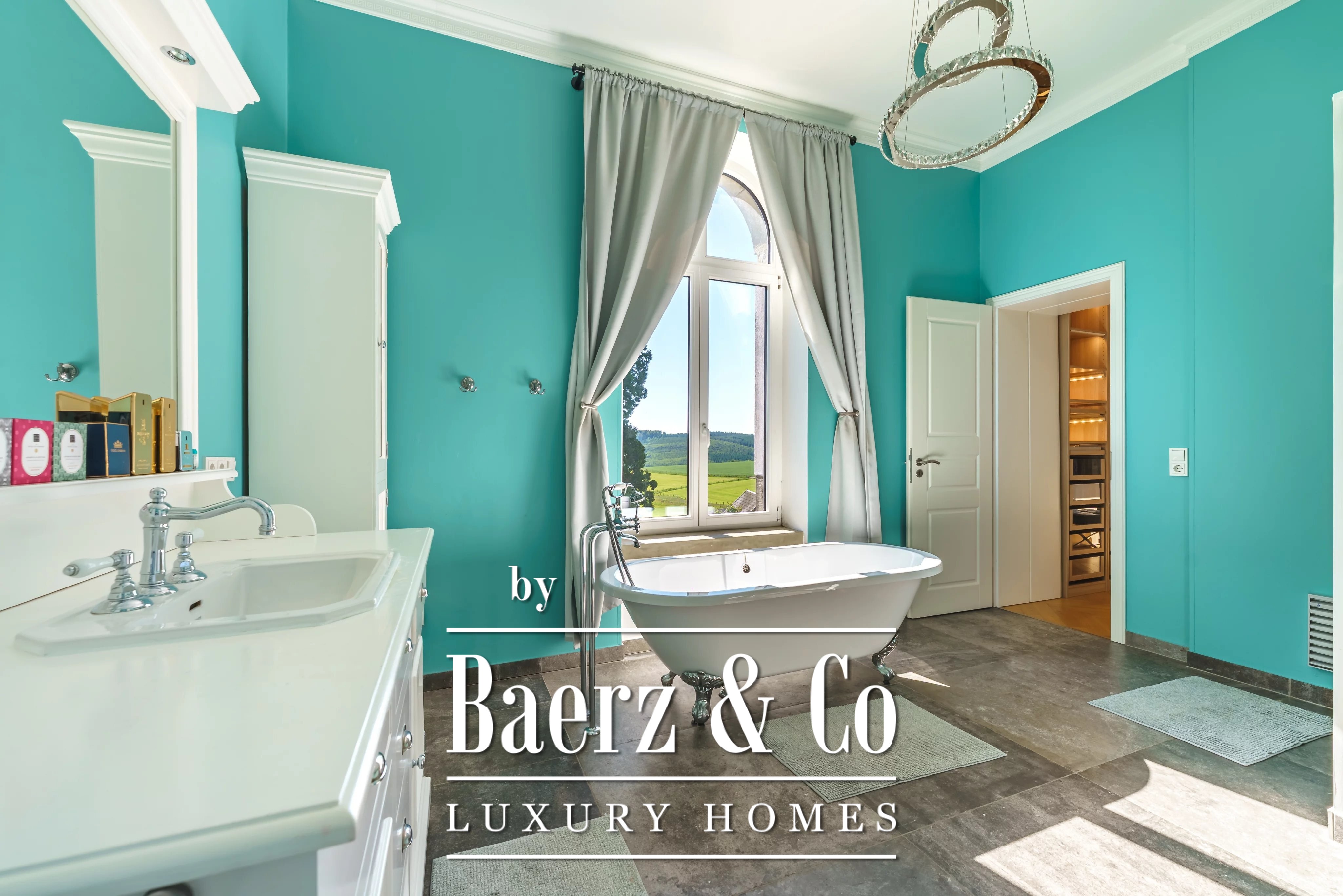 The basement delivers utility and repose, housing a laundry room, workshop, wine cellar, a single-car garage, and dedicated wood storage. Technology integrates subtly: 150 solar panels generating 30 kW, an intelligent heating system remotely accessible, and a BRUNNER fireplace with stove provide both sustainability and comfort. Among its details, the manor house Boevange brings together double glazing, alarm and fire systems, a safe, and understated lighting. This is a property composed for those who value provenance and present-day peace in equal measure.