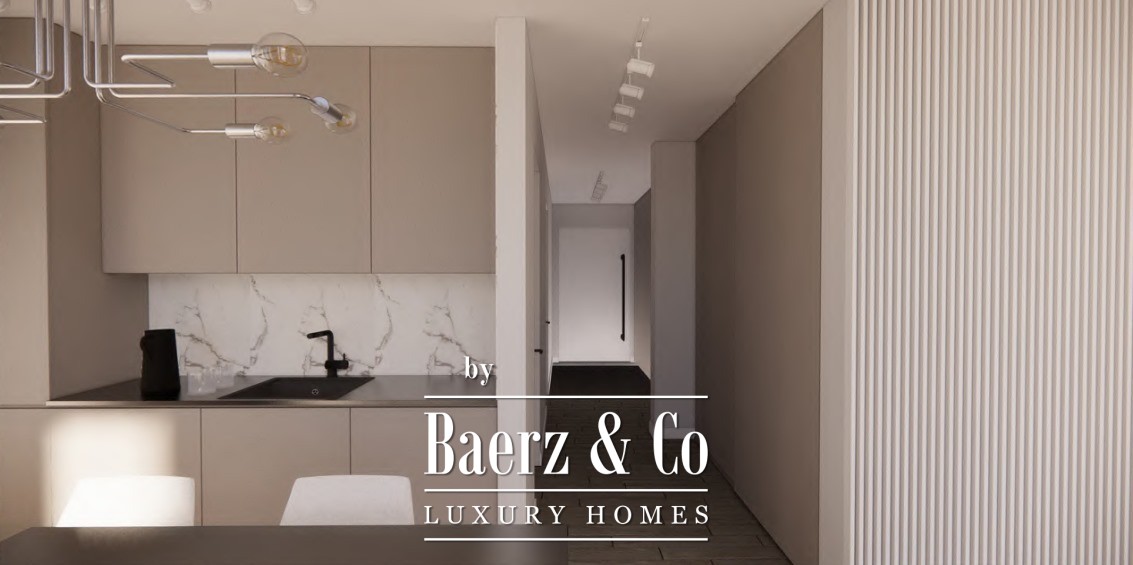 Carefully planned, the apartment’s layout moves from a welcoming hallway into an airy living area, where the kitchen and dining seamlessly come together, adjoining a tranquil bedroom and a thoughtfully appointed bathroom. A private terrace offers open views embracing the sea, the expanse of Budva Bay, and the ancient skyline of 2,500-year-old Budva Old Town.