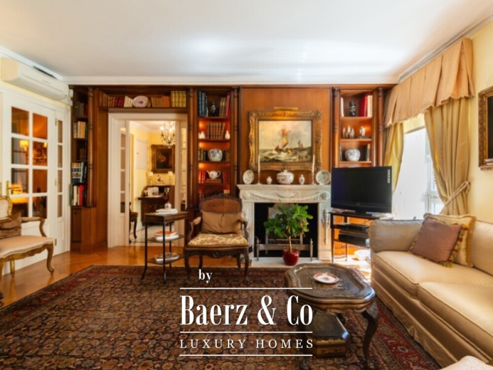 With four bedrooms and four bathrooms, the layout is structured for both grand entertaining and daily quietude, including a dining room, expansive living areas, a fully equipped kitchen, and adaptable spaces for office or wardrobe needs. Original historical details are preserved throughout communal areas, while amenities such as a gym, sauna, communal swimming pool, and landscaped gardens cultivate an enduring sense of well-being. Three private parking spaces and four dedicated storage rooms balance practicality with ease. Onsite concierge service harmonizes service and discretion.