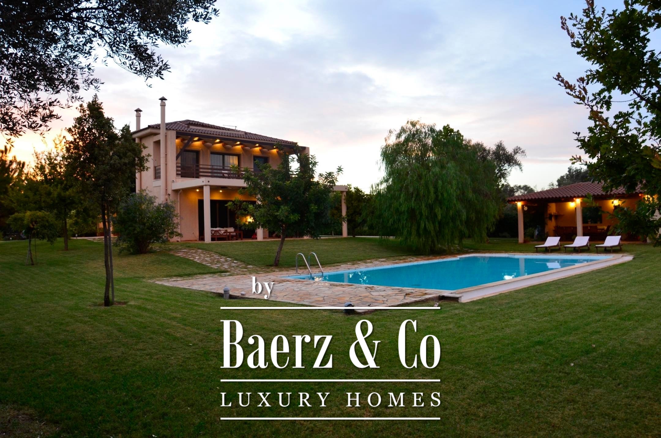 Outdoors, a 72 m² swimming pool, manicured gardens, and various terraces invite moments of quietude or gatherings with guests. The property’s perimeter fencing and underground garage ensure discretion and security. Additional amenities, from autonomous oil heating and air conditioning to a solar water heater, further the sense of year-round comfort. All are set against open panoramic views of countryside and distant mountains, only 3 km from the sea and 5 km from Chalkida’s dynamic urban life. Mitikas stands out for its tranquility and connectivity, offering a refined base for permanent living or as an exclusive holiday destination, all within reach of Athens International Airport in under an hour.