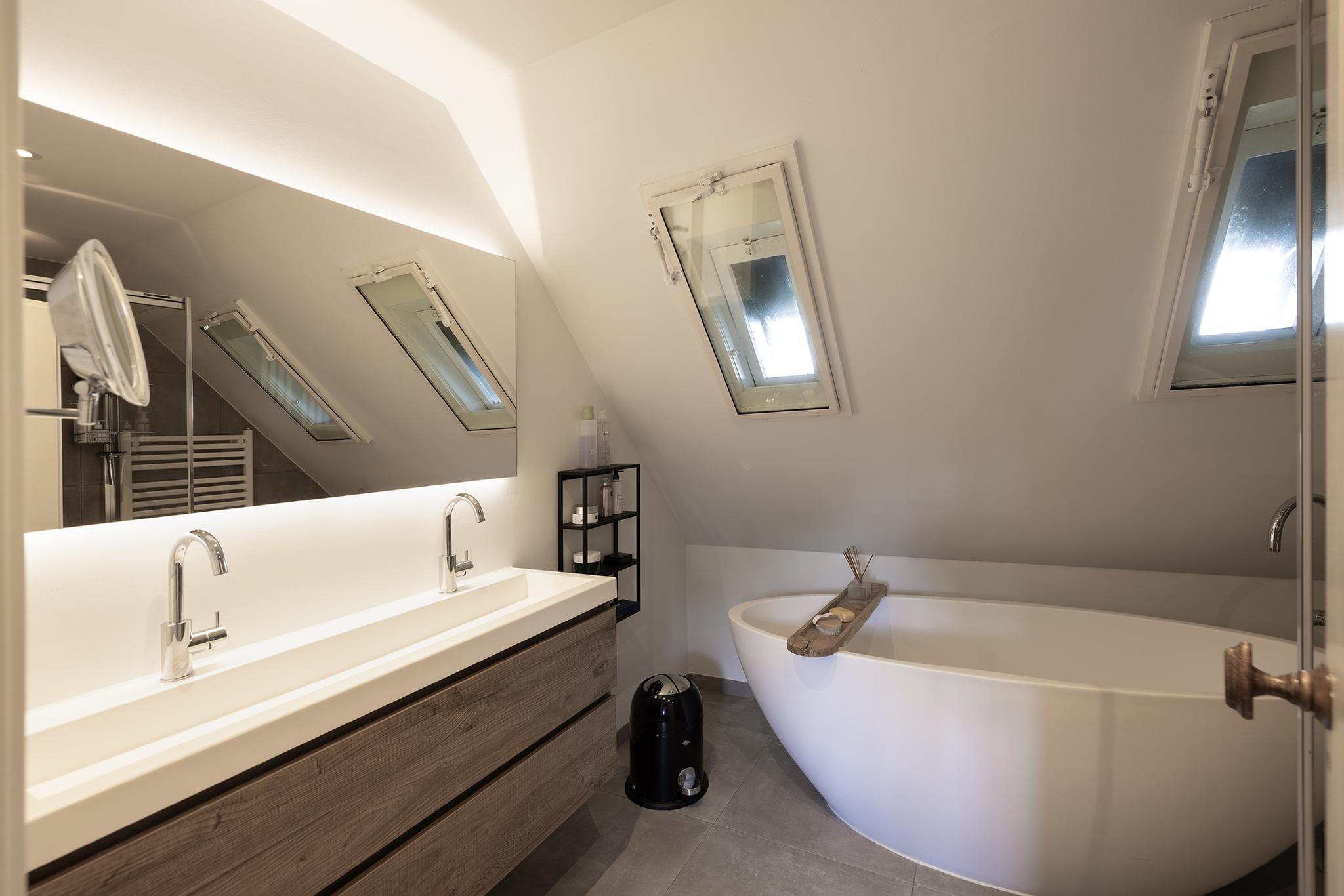 De opkamer met uitzicht op de polder is een geweldige werkkamer, voorzien van een grote schouw en een eigen entree. Onder deze kamer bevindt zich één van de twee kelders, nu in gebruik als royale wasruimte. De verdieping biedt nog meer ruimte: 4 slaapkamers, een moderne badkamer, apart toilet en zelfs een bedstee voor wie het knus wil houden.