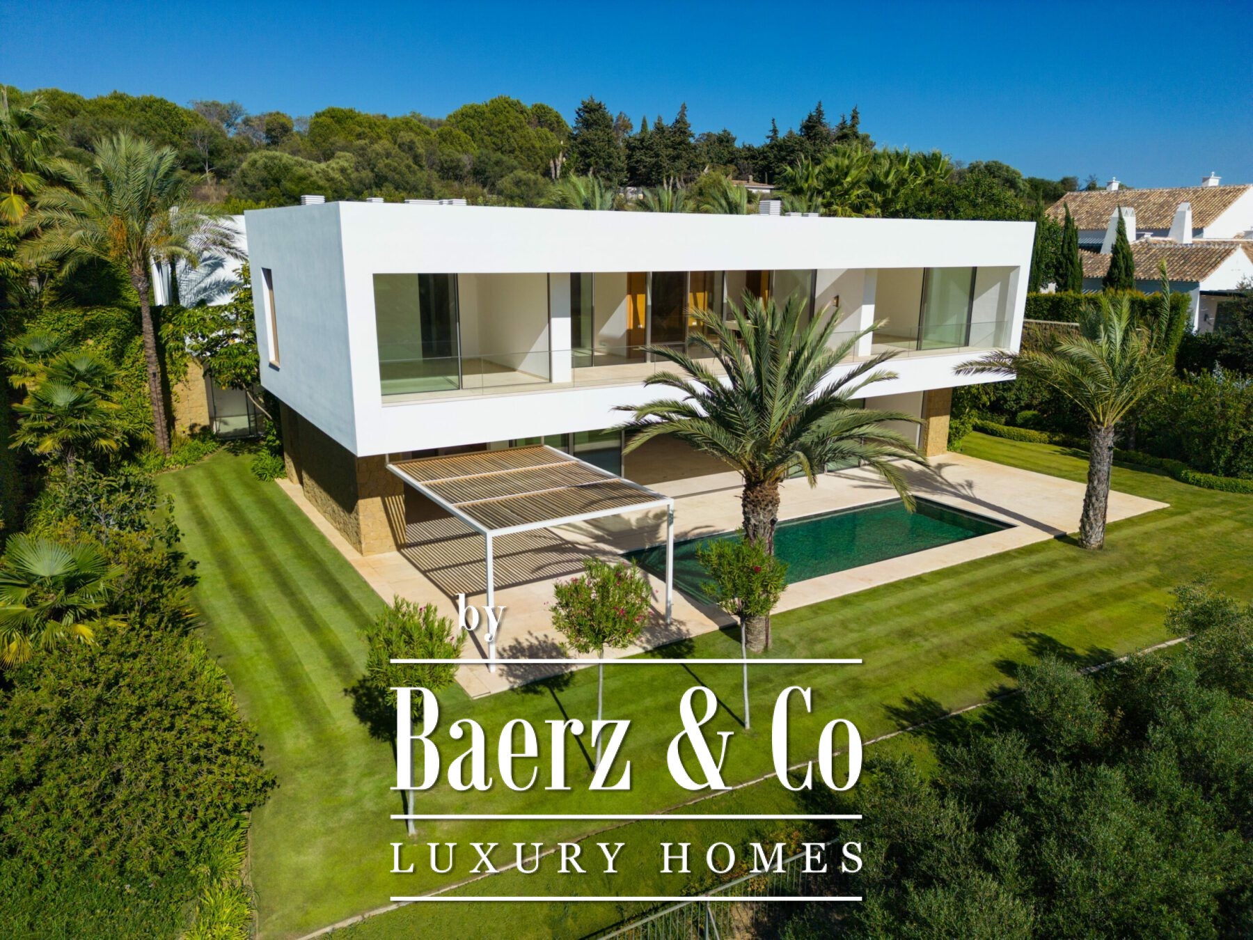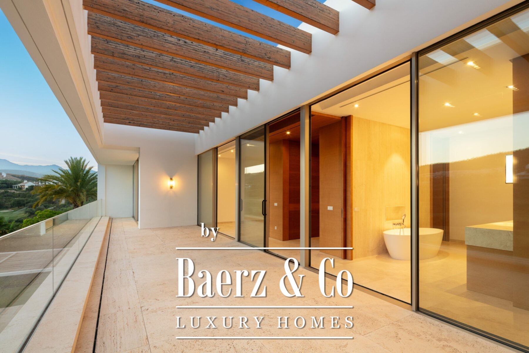 a seamless sense of harmony throughout. The ground floor is home to the well-appointed kitchen, complete with Gaggenau appliances and a comfortable living area that effortlessly connects to the outdoors through a wealth of glass sliding doors. Embracing the concept of indoor-outdoor living, the carefully landscaped gardens create a verdant oasis that melds seamlessly with the interior spaces, offering a unique ambiance. A serene swimming pool complements the garden, inviting year-round enjoyment, while ample terrace space caters to al-fresco dining and chill-out spaces. With its privileged frontline position, breath taking views and stunning architectural design, this extraordinary property epitomises the exclusive luxury golf lifestyle found only at this prestigious golf and spa resort.