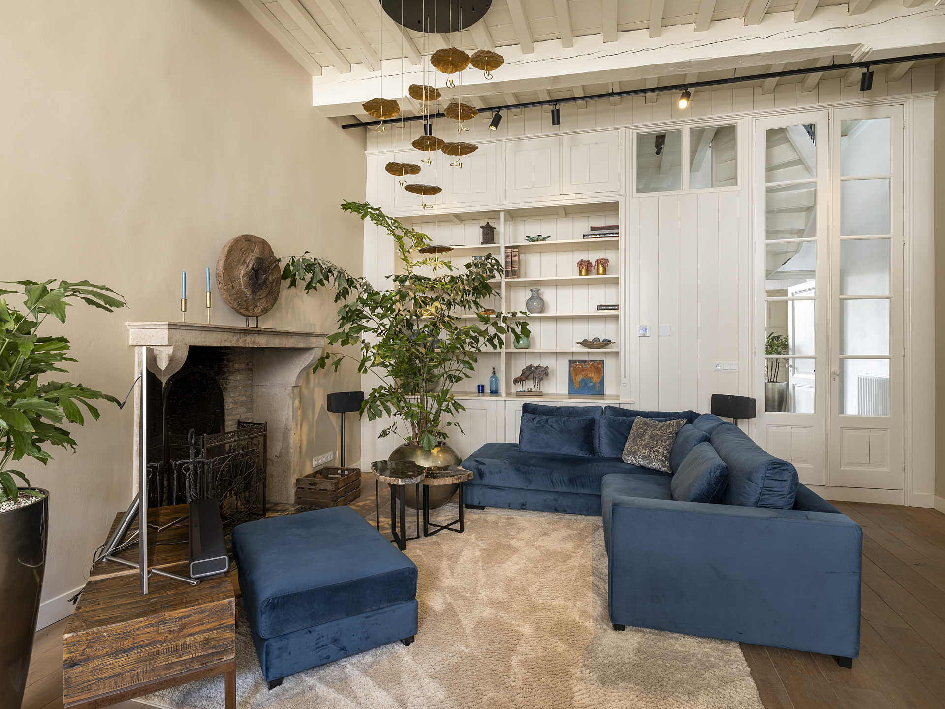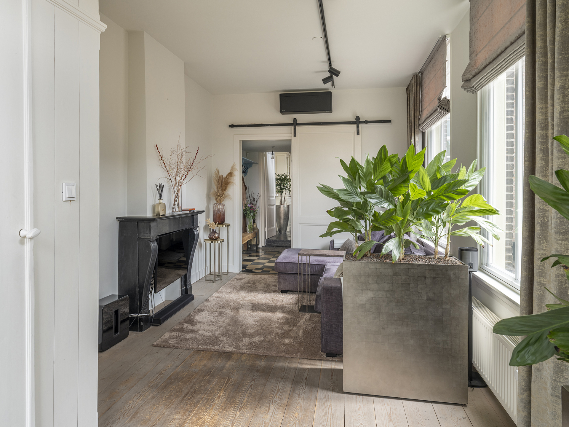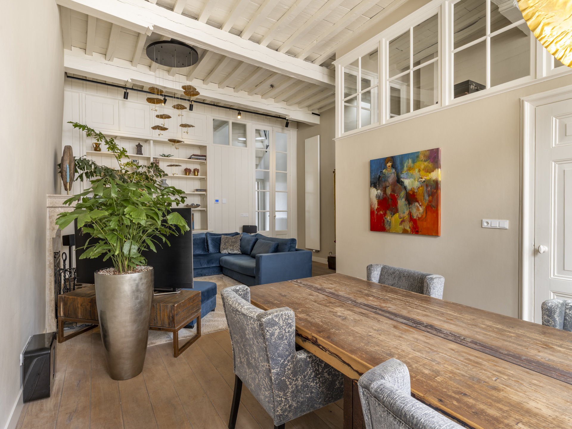 Through one of the many authentic panel doors, you access the spacious living room.
