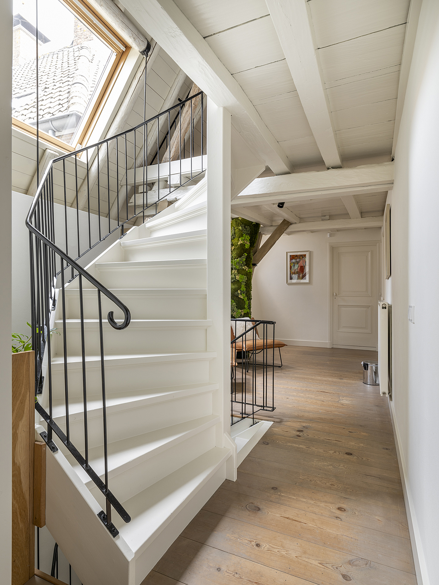 Spacious landing with skylights, an open view of the staircase, and a beautiful spatial effect offering various usage possibilities.
