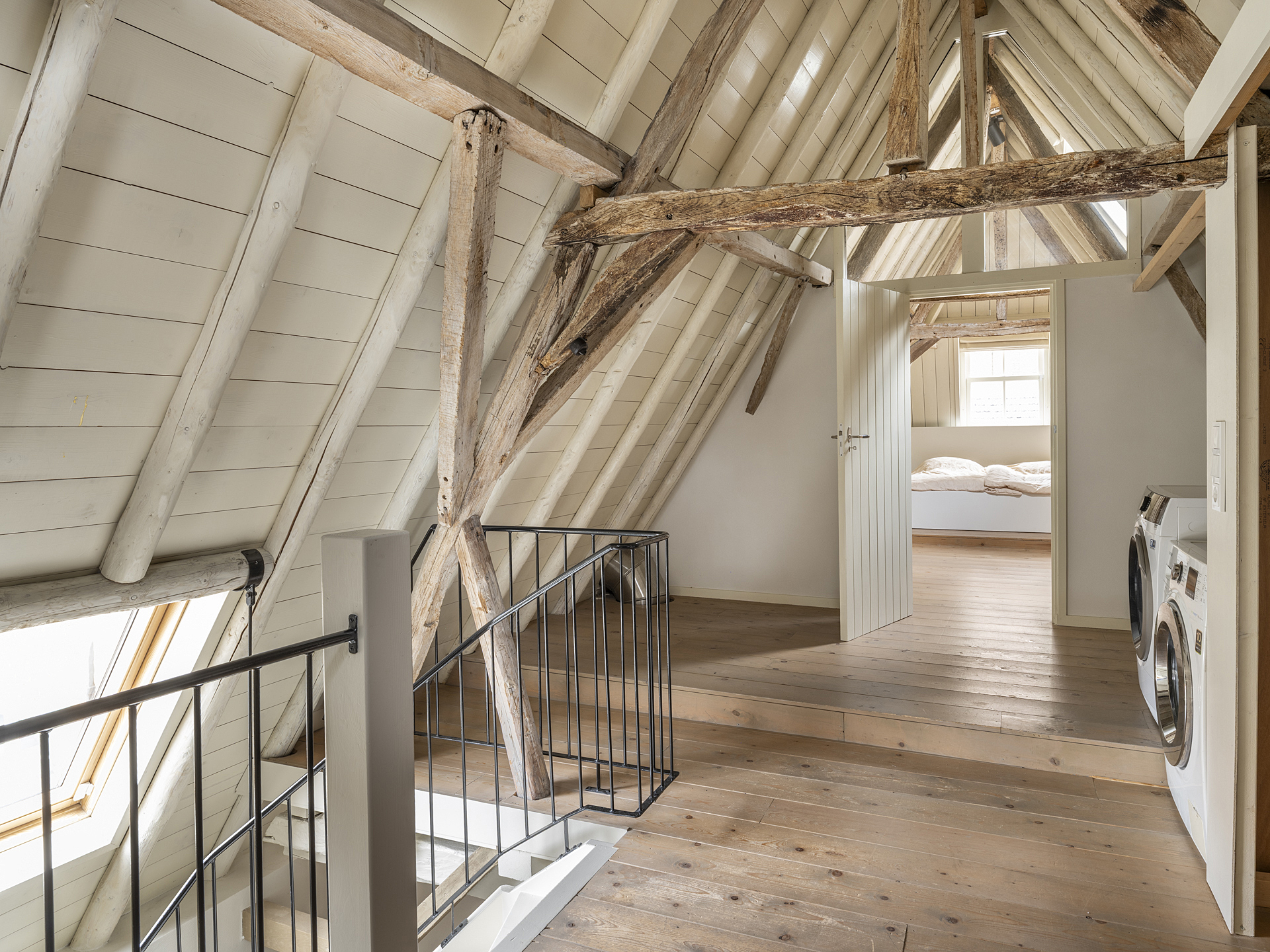 Landing with pleasant workspace (suitable for laundry/ironing), directly under the impressive original roof structure (dated 1556!).