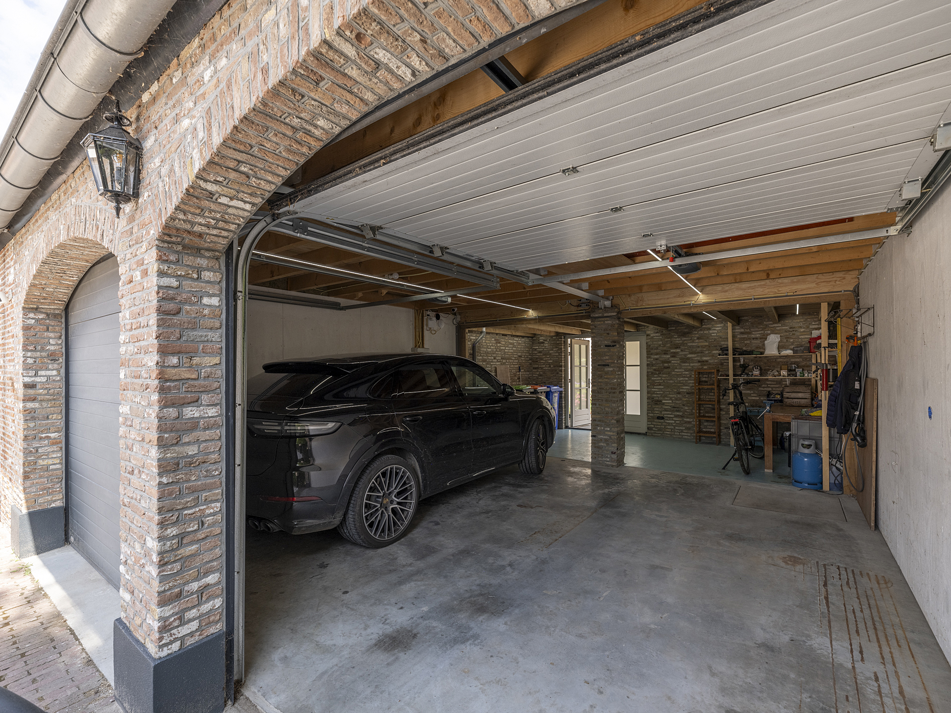 At the rear of the house is a beautiful, sunny garden with a large (fully insulated) garage, which, in addition to accommodating two cars, provides an abundance of storage space. The living area is 268 m² and includes a large, monumental vaulted cellar.