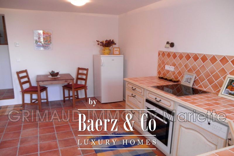 Upstairs, two private master suites each provide en suite bathrooms and access to a solarium, shaping separate and serene quarters. An independent apartment with its own kitchen, living room, and shower room offers flexibility for guests or extended family who value discretion and independence. A carport complements the ensemble, while panoramic views of Grimaud’s medieval village anchor the home within its Provençal context. This property combines seclusion, authentic architectural character, and proximity to village amenities, making it an appealing choice for those seeking refined villa living in Grimaud.