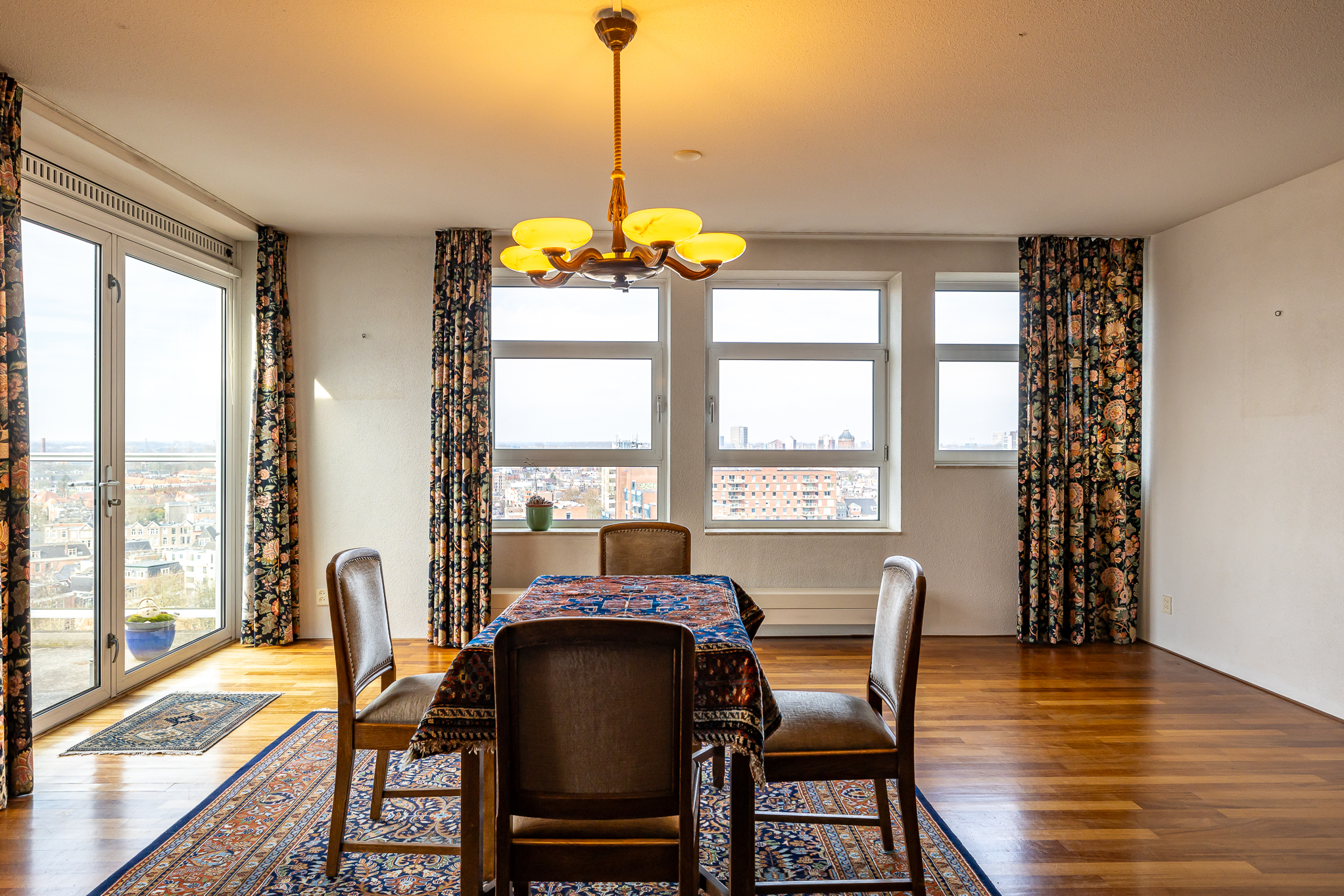 Penthouse Groningen is a rare residence offering refined urban living at the edge of the city’s historic heart. This exclusive penthouse provides 263 m² of living space, where floor-to-ceiling views extend over the Verbindingskanaal, the Zuiderhaven, and the tree-lined Praediniussingel. The property’s distinctive design, achieved by uniting two penthouses, creates a spacious layout with four bedrooms and two bathrooms, including features such as a whirlpool, sauna, and steam cabin.