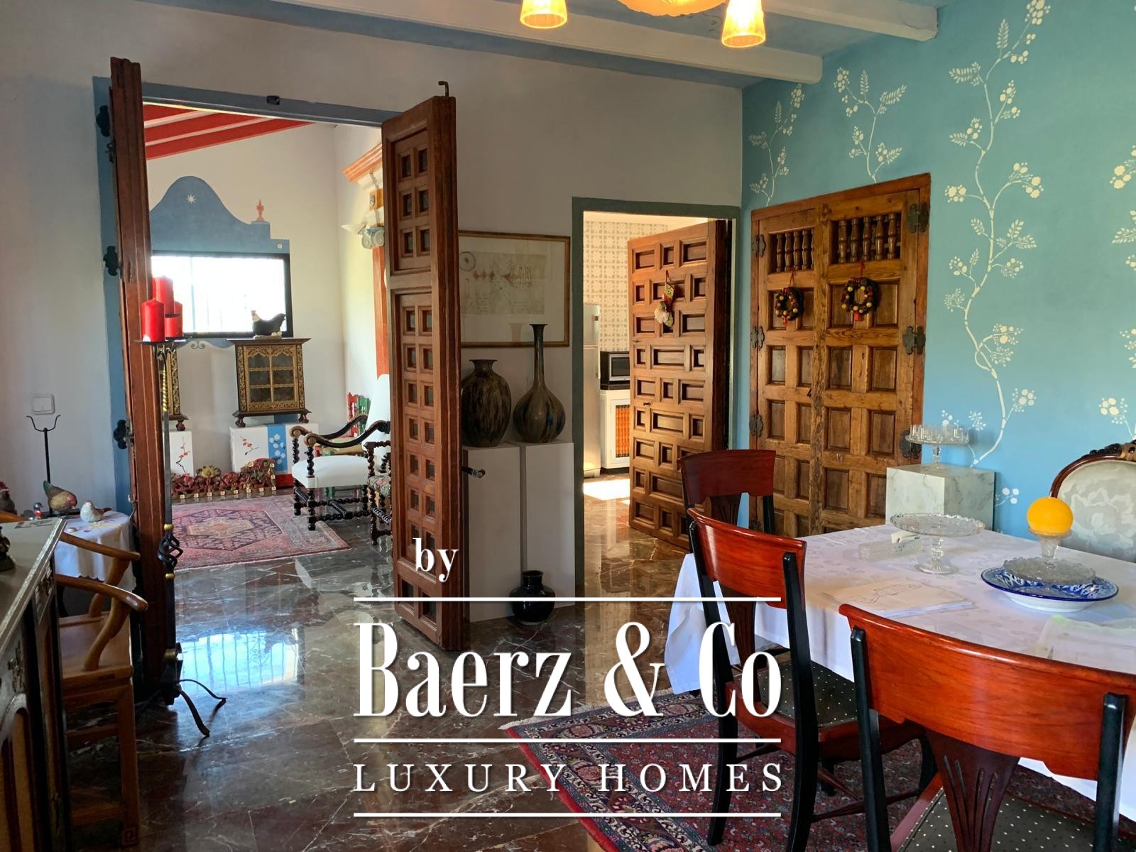 This rustic villa Guadalest offers a tranquil refuge framed by the dramatic silhouette of Guadalest Castle. Set discreetly within a generous 5,750 m² plot, the property combines classical Spanish architecture with immersive natural surroundings. Stepping inside, one immediately appreciates the sense of openness realized through high ceilings and abundant daylight. The main residence unfolds across two levels, comprising approximately 230 m², with six bedrooms and five bathrooms designed for privacy and ease.