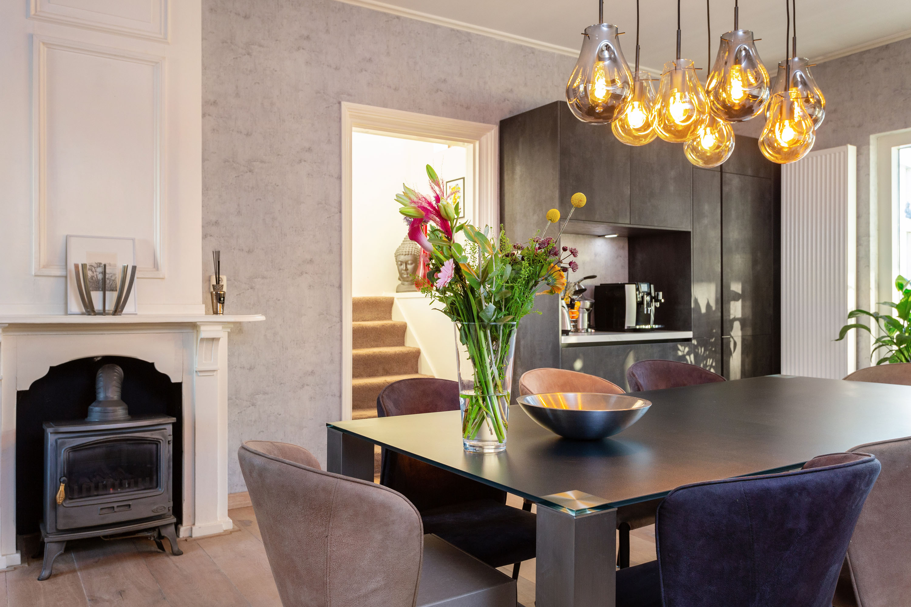 The spacious upper floor of the barn has 3 more beautiful multi-functional rooms plus a huge hobby or entertainment room, a large storage attic, a cozy bar and a fully equipped cooking studio. All in a modern look while retaining old details. The impressive roof of the barn has been beautifully renovated and panelled.
