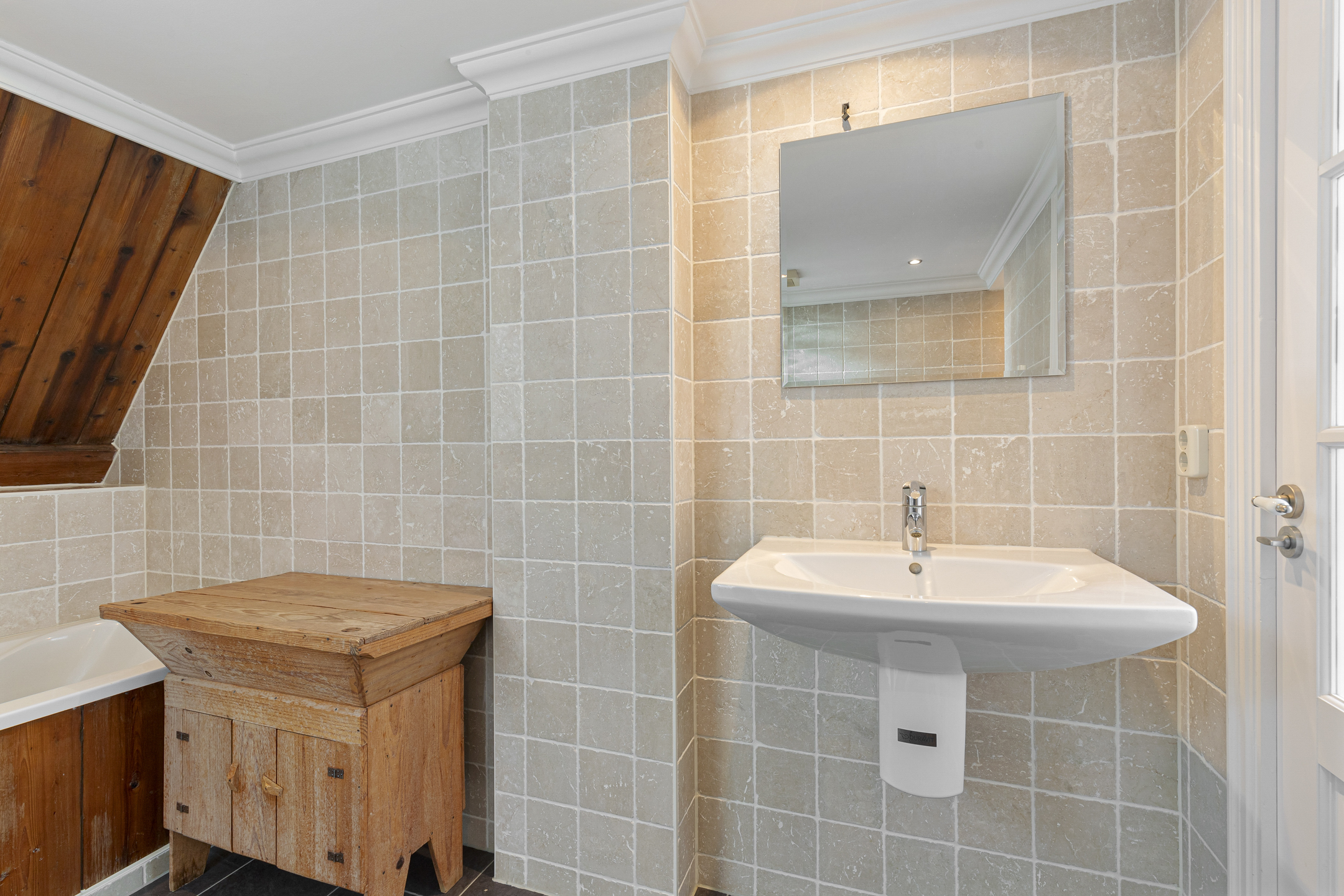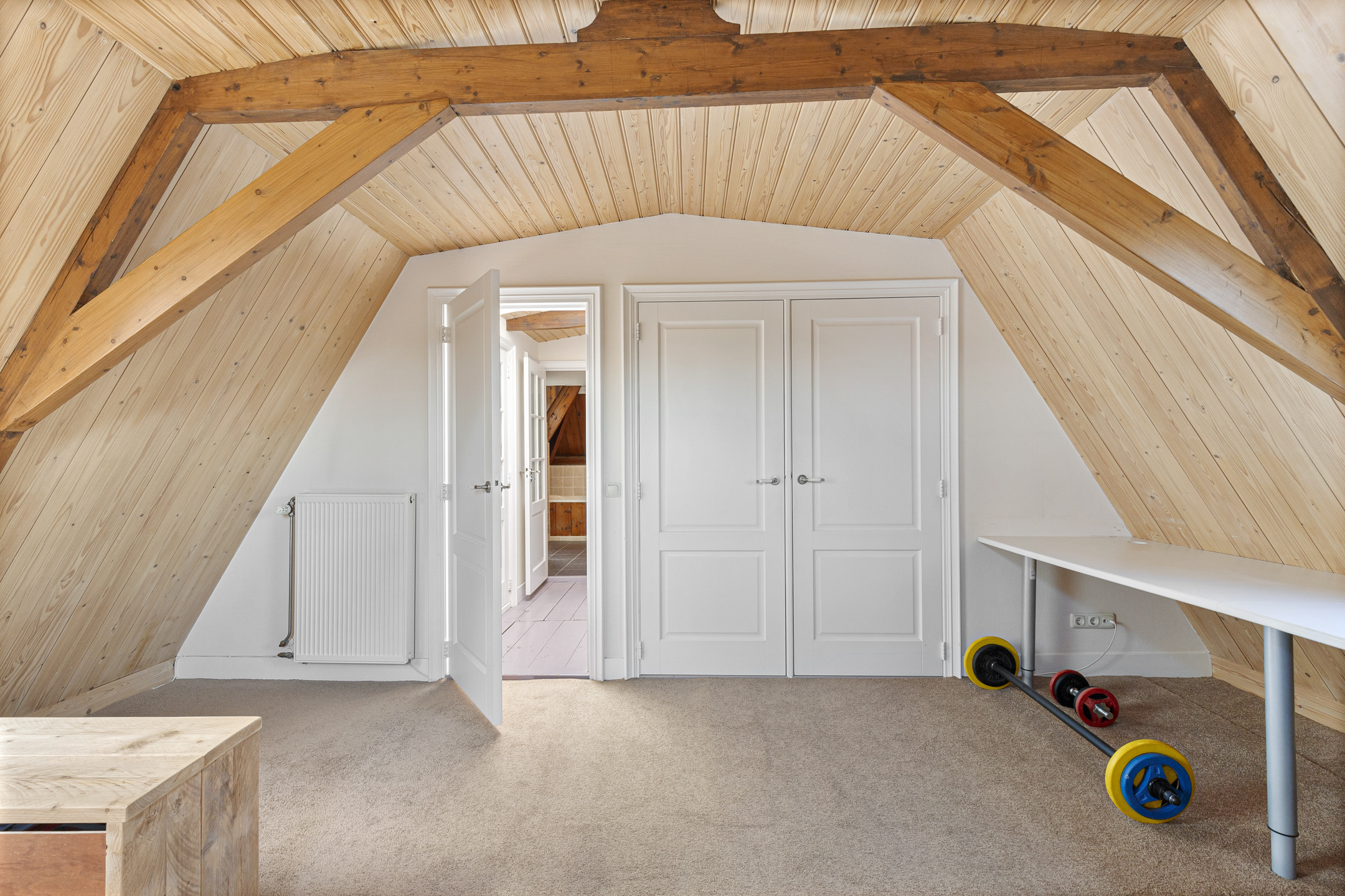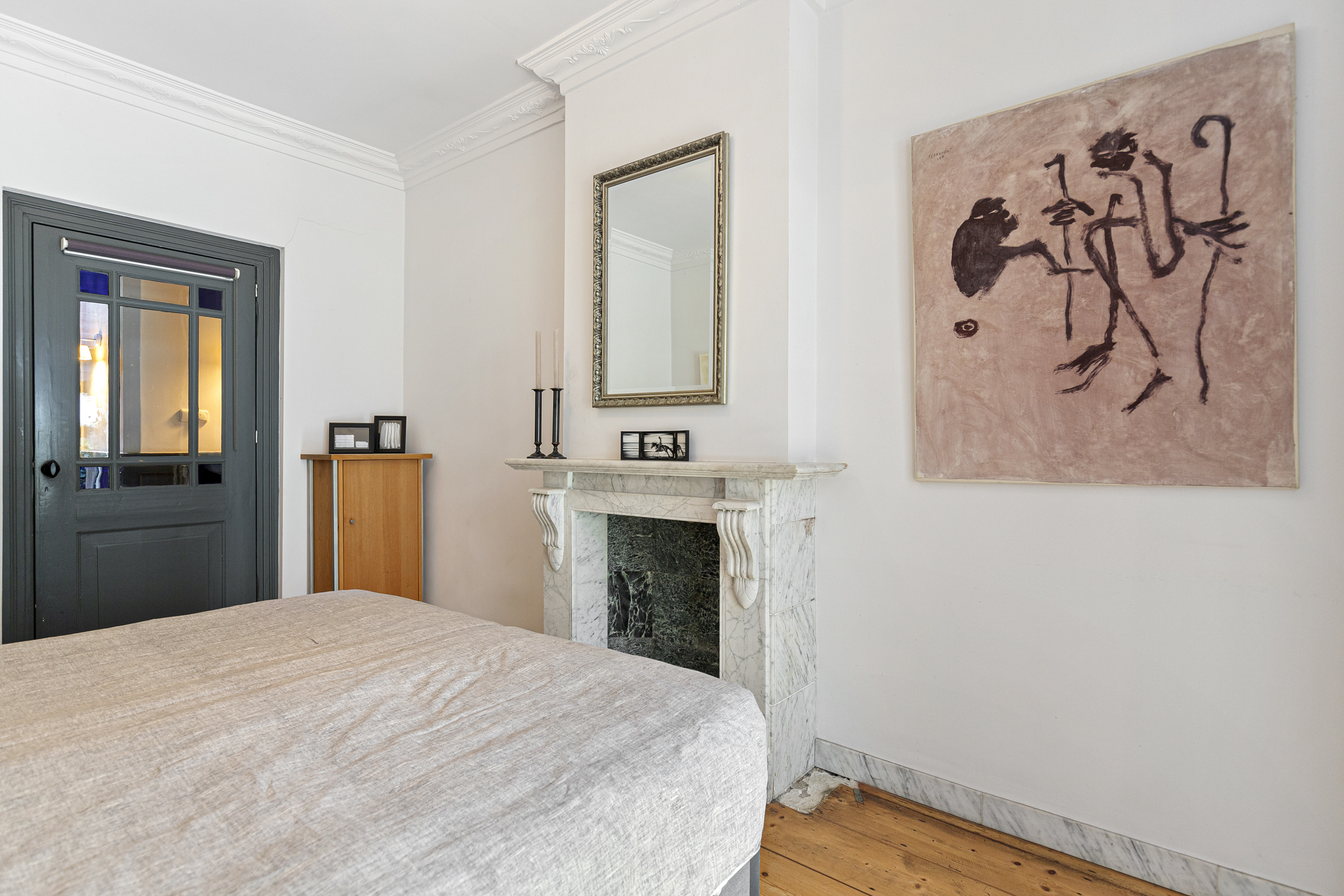 In addition to the en-suite on the bel étage, the third floor offers two large bedrooms and a luxurious bathroom. The newly finished roof with exposed beams adds both character and warmth. The souterrain provides extra living space with a cosy guest bedroom, an en-suite bathroom, and a walk-in closet – ideal for guests or an au pair.