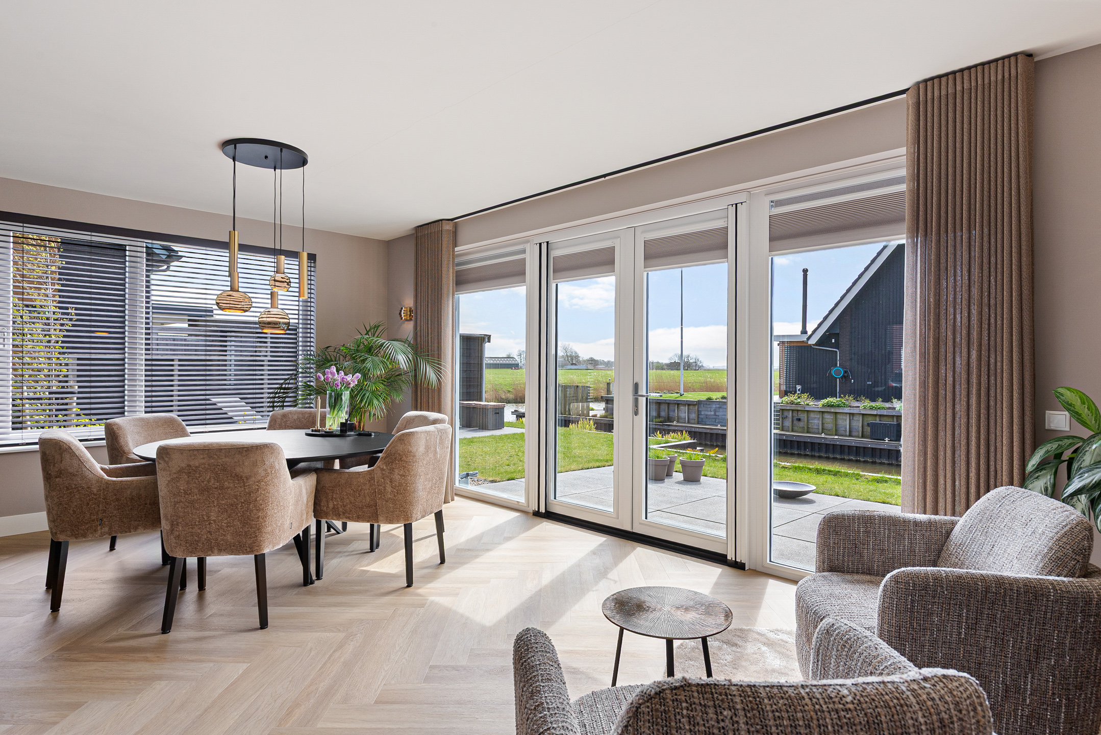 The architect-designed waterfront garden has been beautifully landscaped and features several terraces, stylish planting, and a generous composite mooring jetty. From your private water access, you can directly enter a branch of the famous Eleven Cities Route (Elfstedentocht).