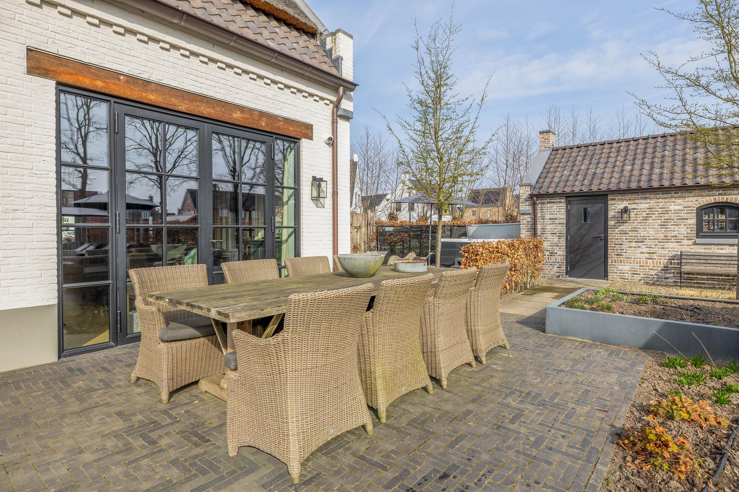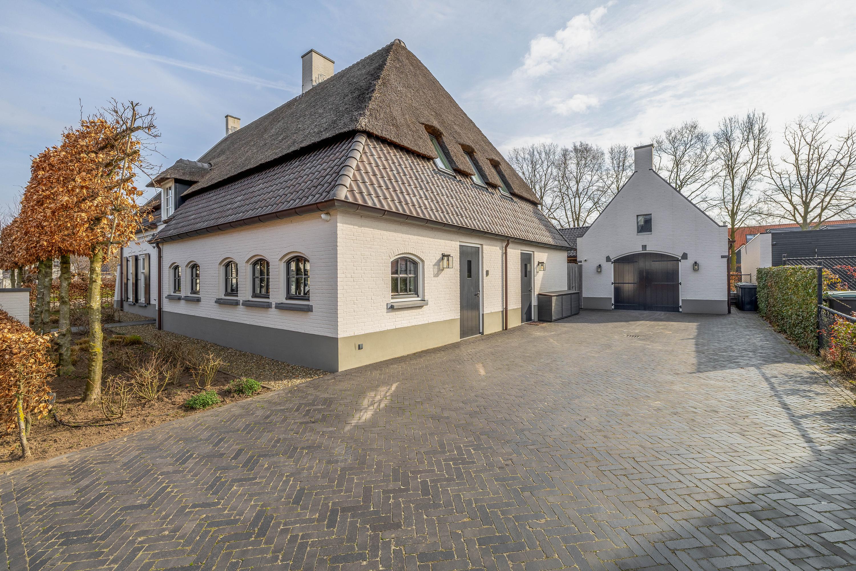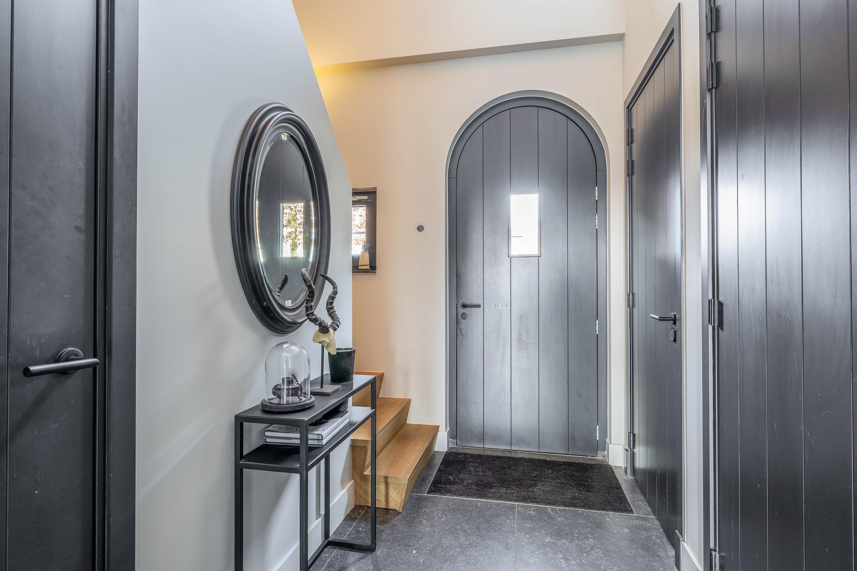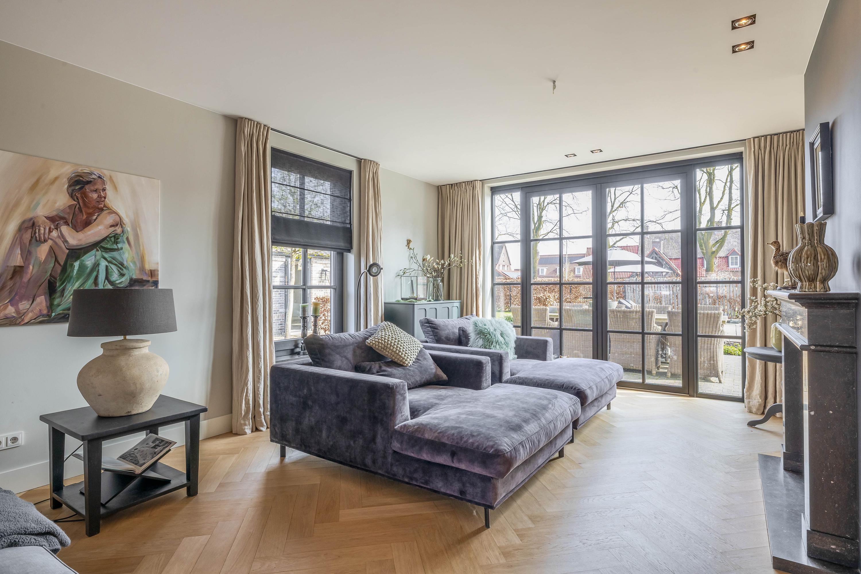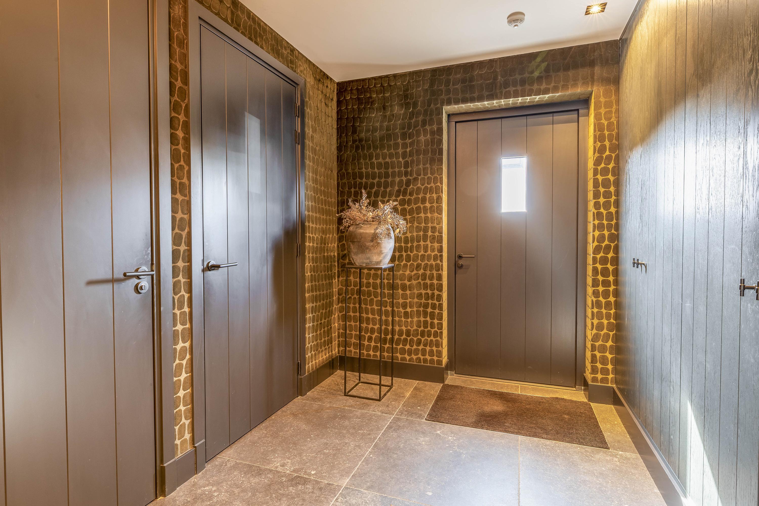 This farmhouse offers you a rare opportunity to live in an oasis of luxury, comfort, and privacy. With attention to detail, high-quality materials, and a thoughtful layout, every floor showcases a cohesive design where ceramic tiles, an oak herringbone floor, and meticulously applied stucco unite to form a warm and elegant whole. The seamlessly coordinated materials and finishes give every space a refined, consistent look.