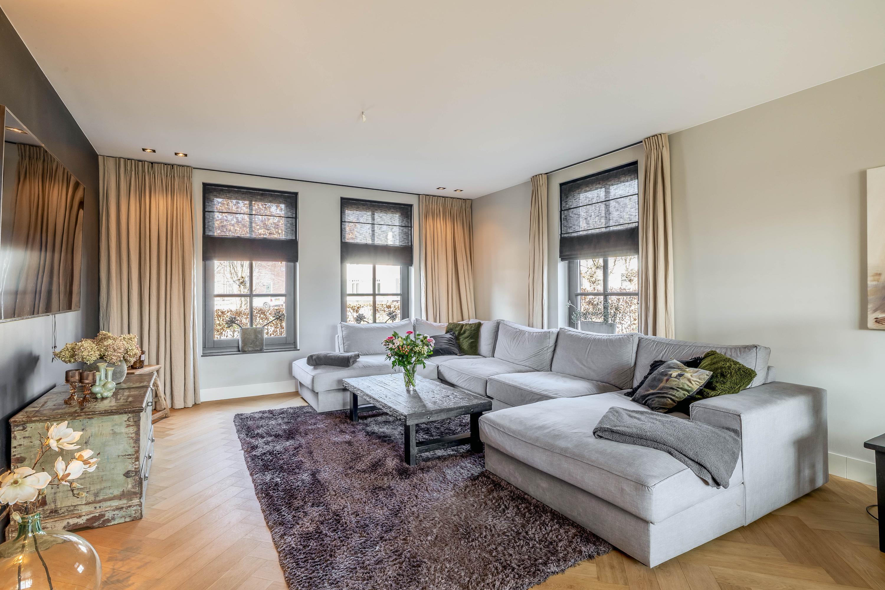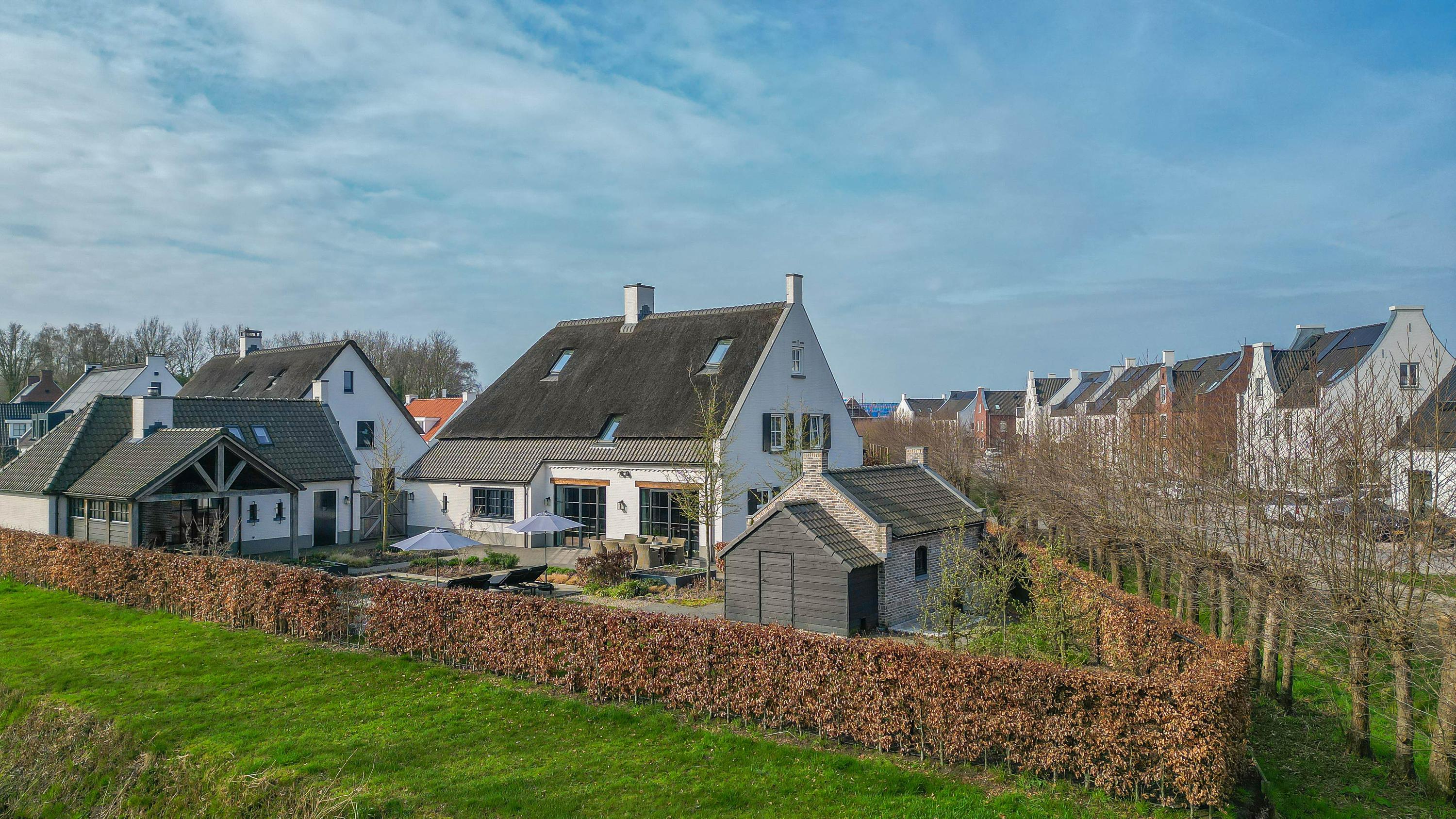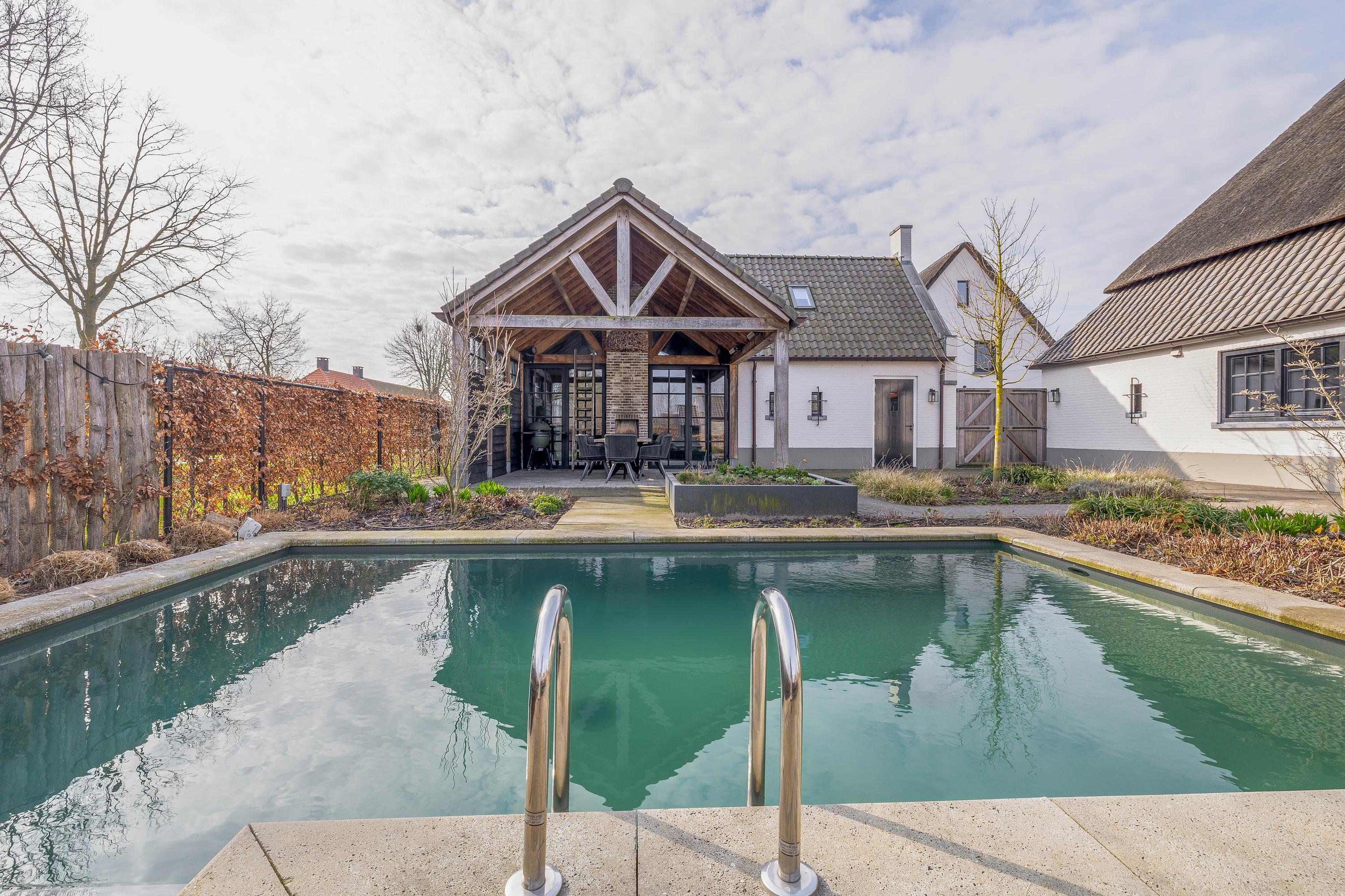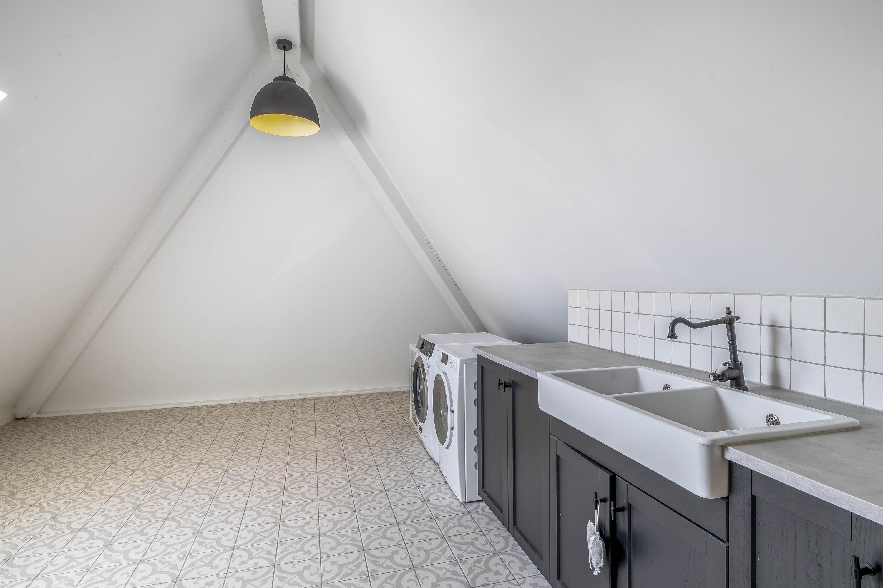 This farmhouse offers you a rare opportunity to live in an oasis of luxury, comfort, and privacy. With attention to detail, high-quality materials, and a thoughtful layout, every floor showcases a cohesive design where ceramic tiles, an oak herringbone floor, and meticulously applied stucco unite to form a warm and elegant whole. The seamlessly coordinated materials and finishes give every space a refined, consistent look.