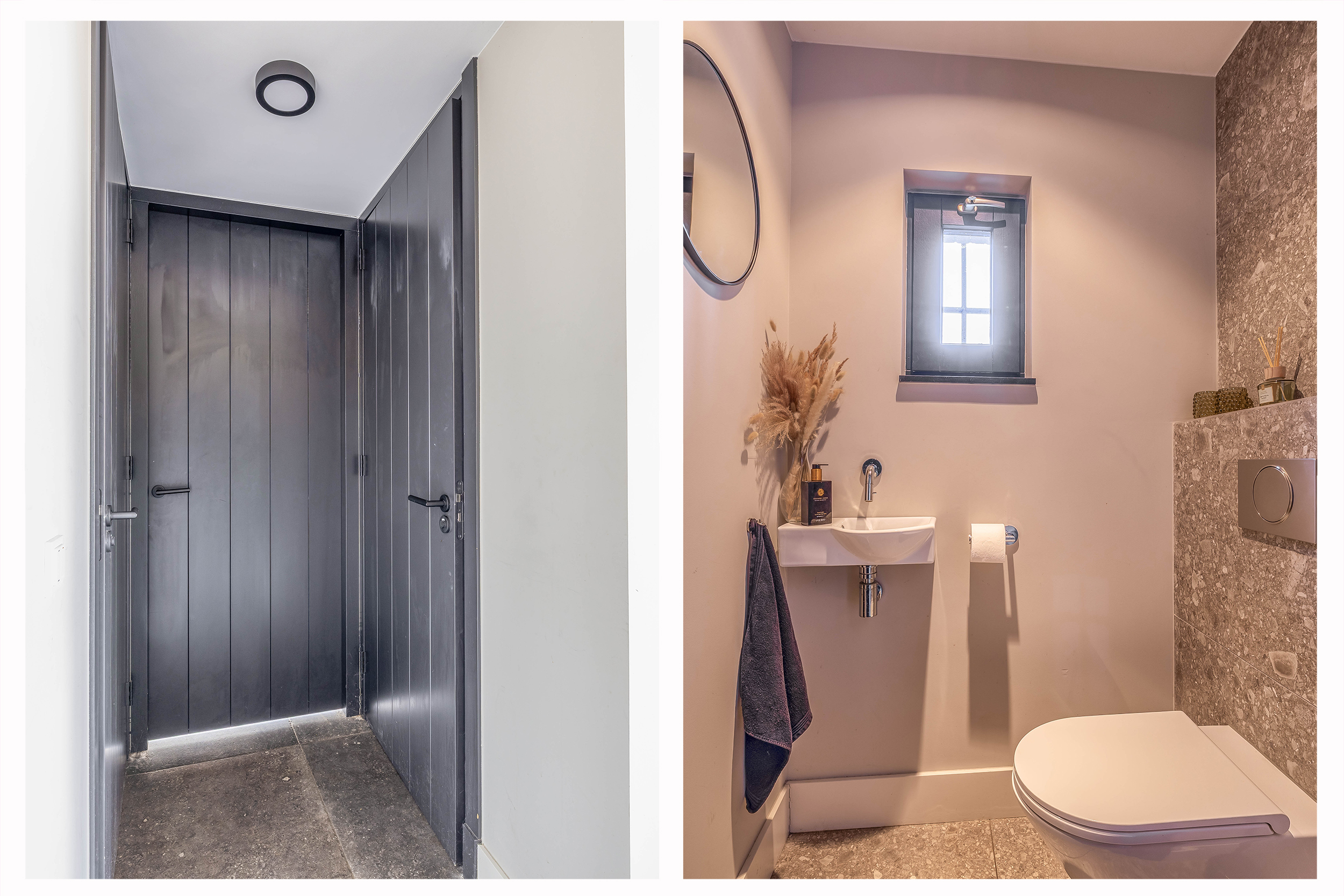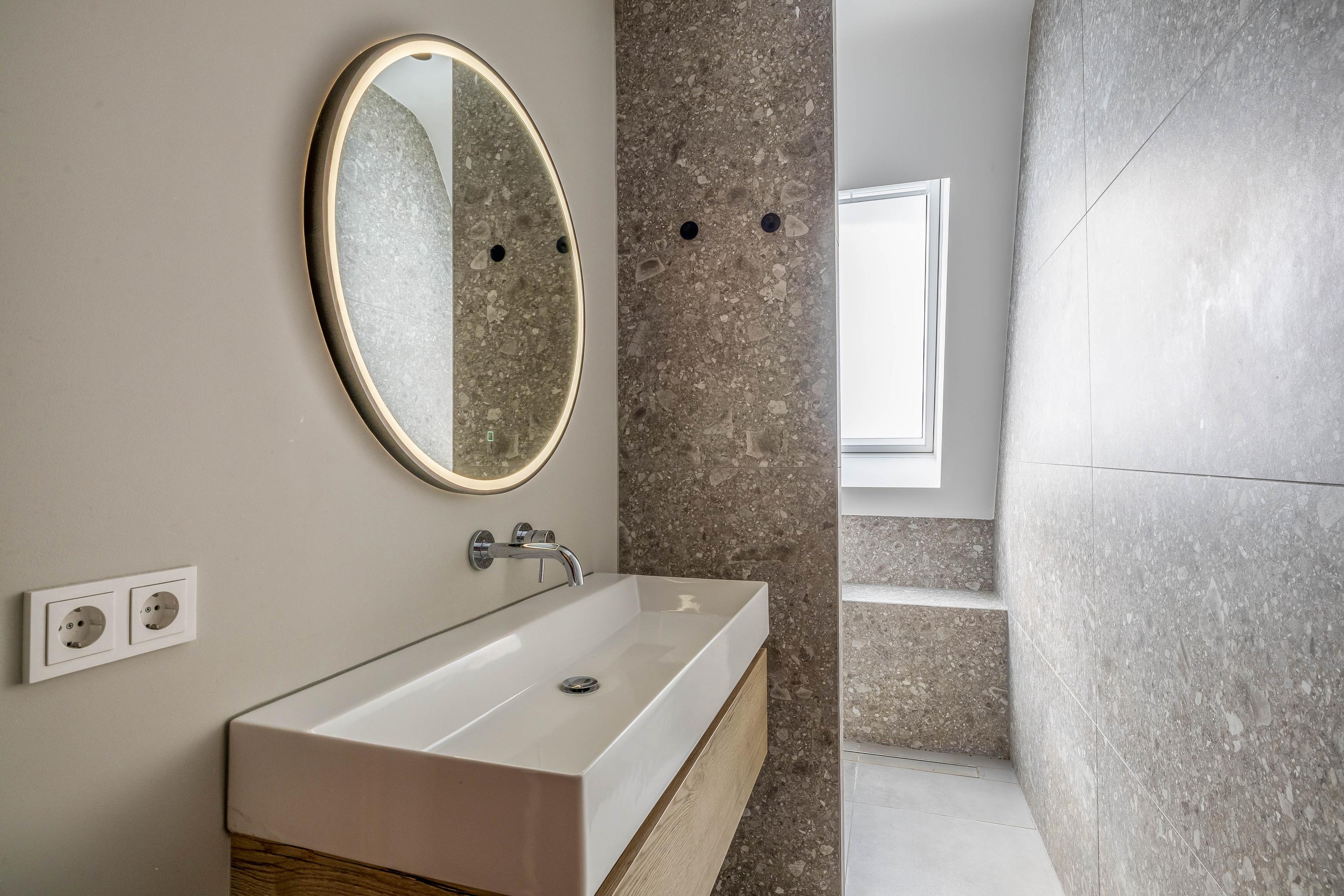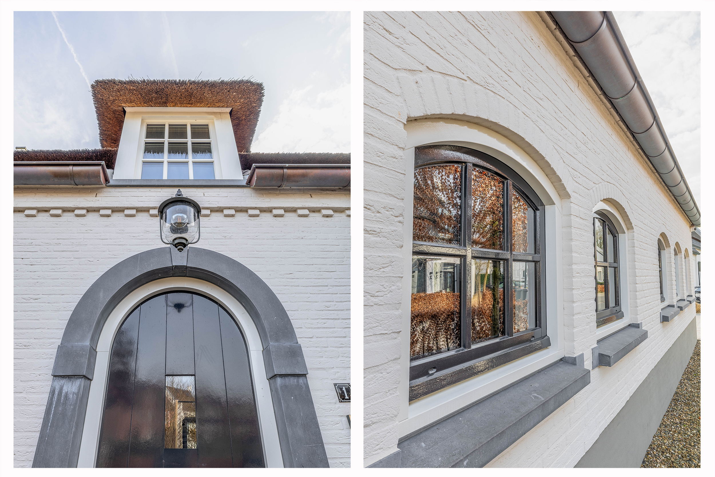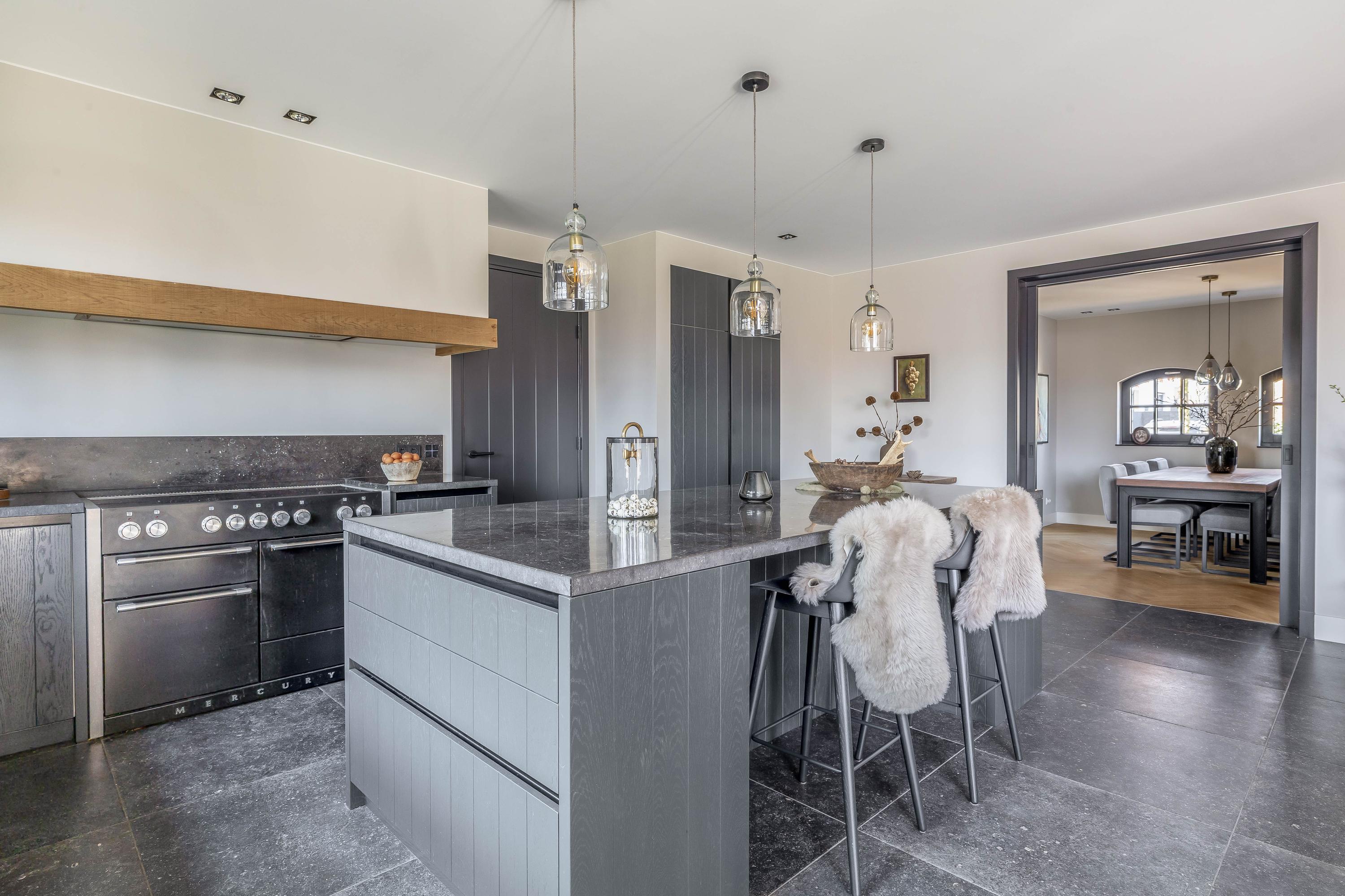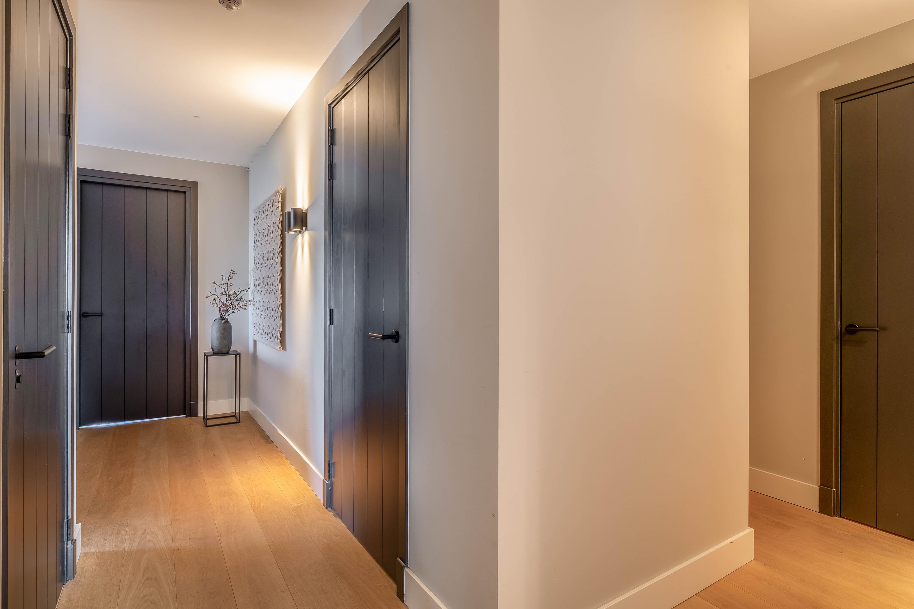 This farmhouse offers you a rare opportunity to live in an oasis of luxury, comfort, and privacy. With attention to detail, high-quality materials, and a thoughtful layout, every floor showcases a cohesive design where ceramic tiles, an oak herringbone floor, and meticulously applied stucco unite to form a warm and elegant whole. The seamlessly coordinated materials and finishes give every space a refined, consistent look.