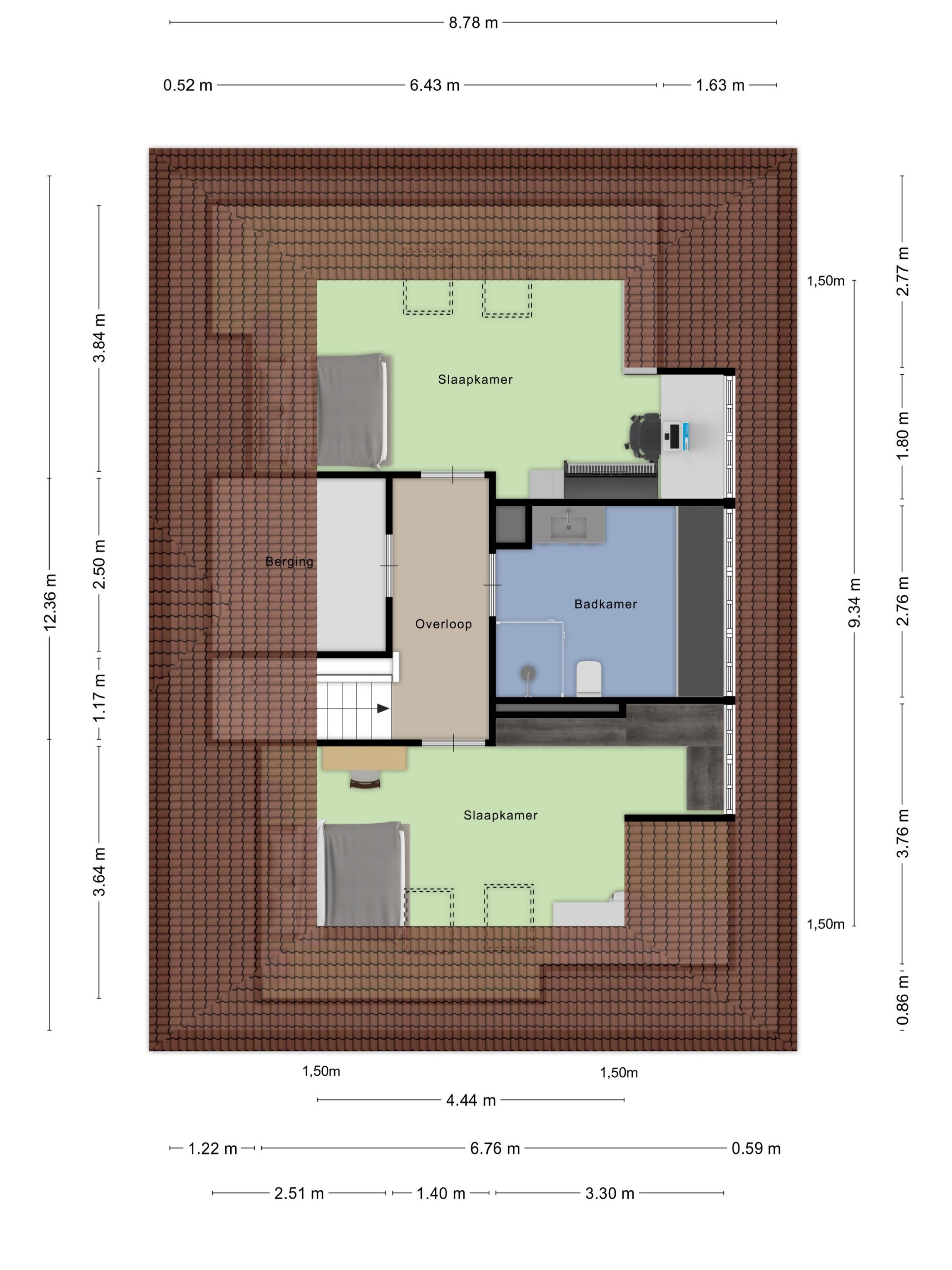 De tweede verdieping biedt nog eens twee ruime slaapkamers, een tweede badkamer en een aparte berging, ideaal voor een groot gezin, gasten of een combinatie van wonen en werken.