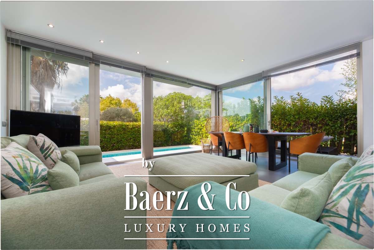 The SurroundingsLocated in the charming village of Jesús, this modern townhouse offers the perfect balance between tranquility and accessibility. Jesús is a vibrant and popular residential area with amenities open all year round, making it ideal for those seeking a permanent home or long-term stay in Ibiza. Within just a few minutes you can reach Ibiza Town, the exclusive Marina Botafoch and the beloved beaches of Talamanca and S’Estanyol. The village itself exudes Mediterranean charm with cosy restaurants, stylish cafés and boutique shops all within walking distance. Here you can enjoy a relaxed living environment while the energy and charm of the island are always close by.The TownhouseThis 178 m² townhouse with 120 m² of outdoor space is designed for comfortable and atmospheric living. On the ground floor, you are welcomed by a bright open-plan living area with warm materials and large sliding doors that beautifully connect indoor and outdoor living. The adjoining dining area and fully equipped kitchen create an inviting space for relaxed meals and social gatherings. Completing this level is a separate guest toilet and direct access to the private garage, ideal for parking and extra storage.On the first floor, you will find three comfortable bedrooms. The master