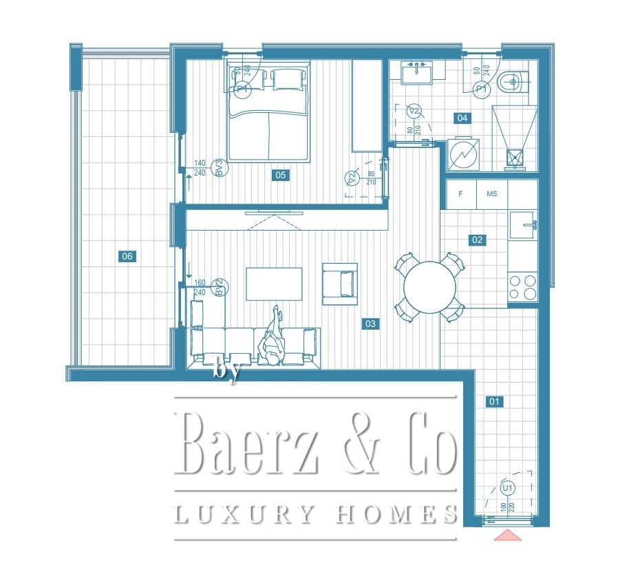 Structure of the apartment: hallway, living room with kitchen and dining table, a bedroom, a bathroom and a terrace. The apartment will be delivered with finished floors, finished tiles, finished bathroom and equipped air conditioning.