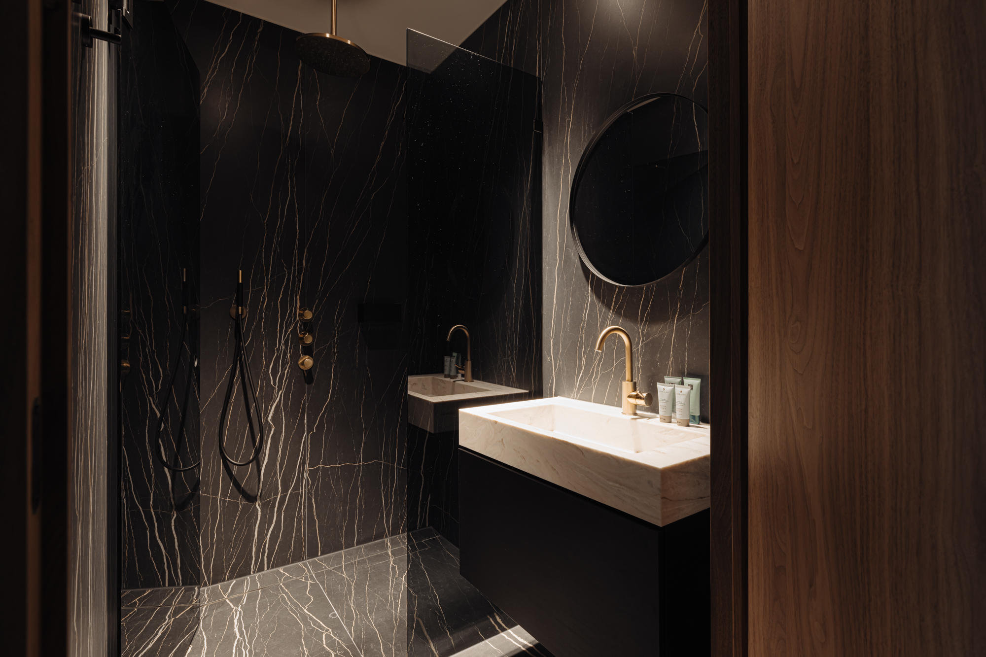 Behind the double front doors lies an apartment of international allure. Here, excellent material choices, outstanding craftsmanship, and attention to detail come together to create a unique living experience best described as "suite" life. Here, the warmth of a home meets the luxury of a five-star hotel.